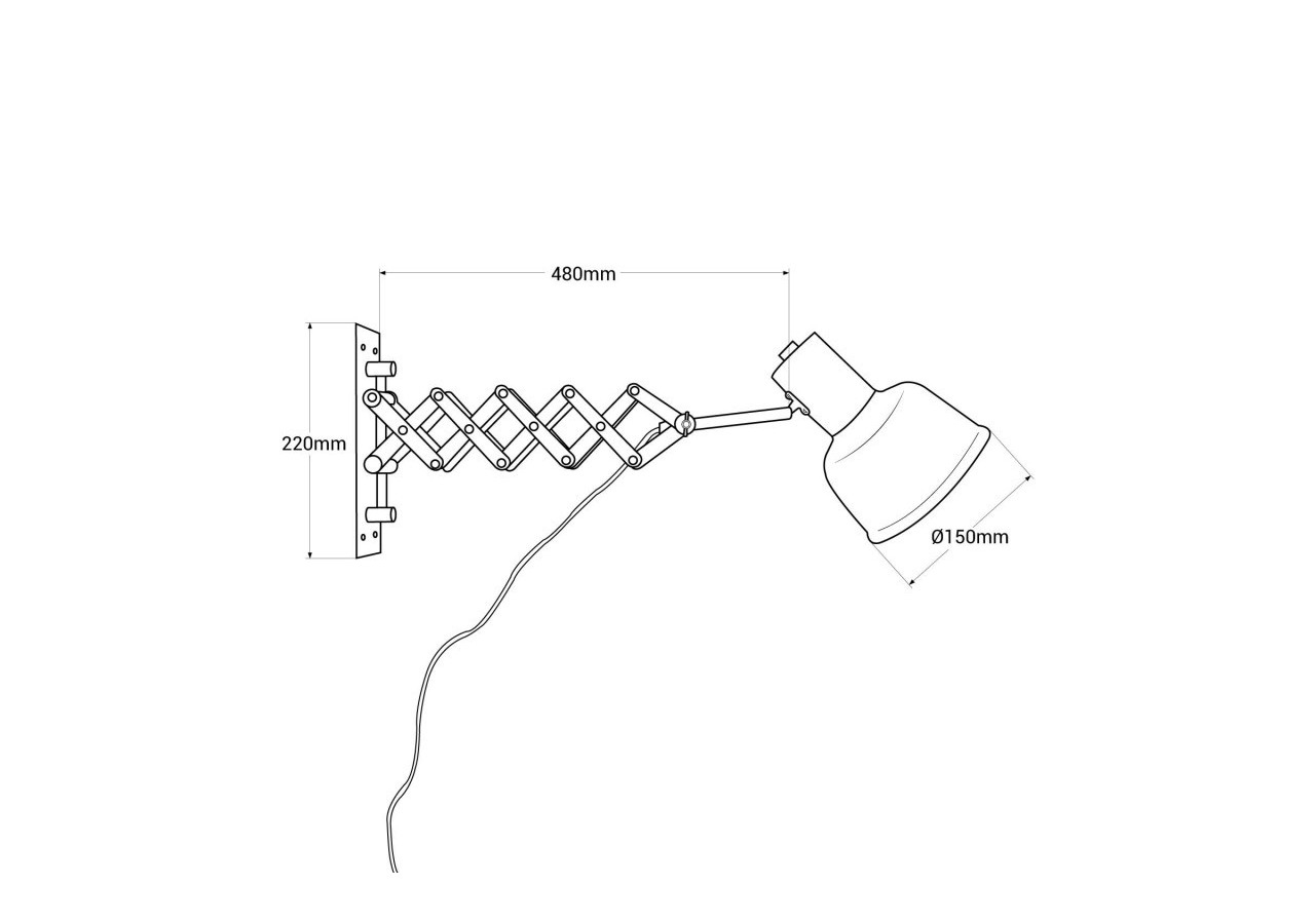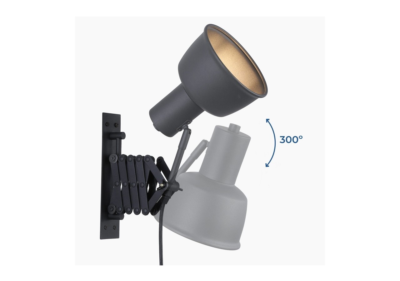 L'applique murale "Roma" offre un bras extensible jusqu' à 48 cm, avec un abat-jour réglable à 300º, offrant une grande polyvalence dans l'orientation de la lumière. Son ressort en forme de ciseaux permet une rétraction minimale de 30 cm.