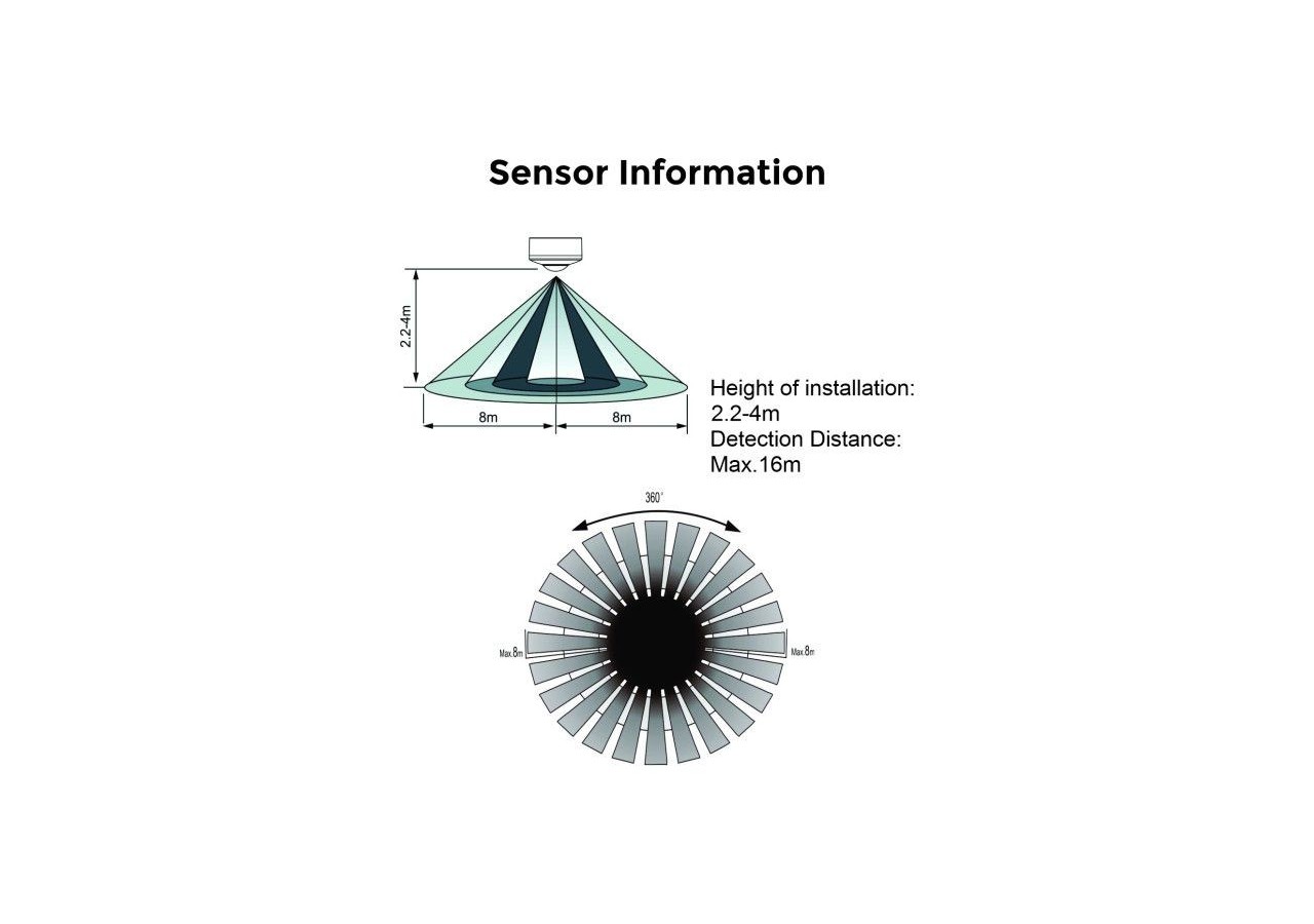 Il peut aussi bien fonctionner de jour que de nuit en réglant la sensibilité de la lumière de détection. Par ailleurs, il permet de régler la distance de portée de 2 à 16 m, en fonction de la superficie de chaque espace. Il est également possible de programmer le temps de veille, c'est- à -dire le temps pendant lequel le luminaire s'éteint lorsque le capteur ne détecte plus de présence.