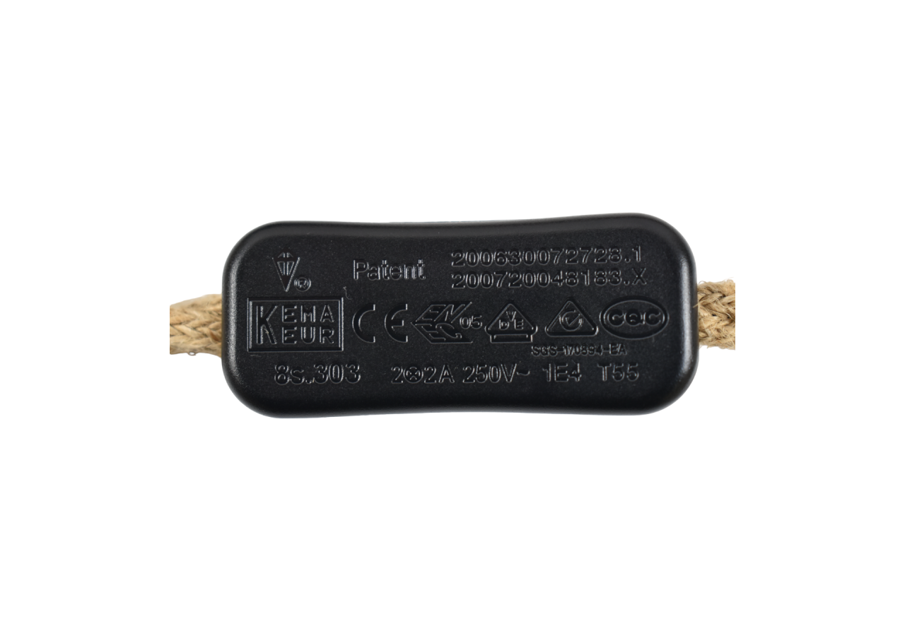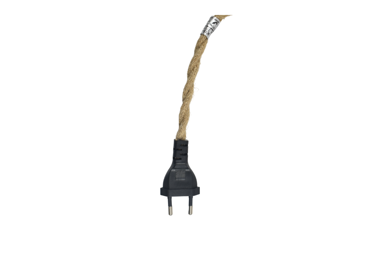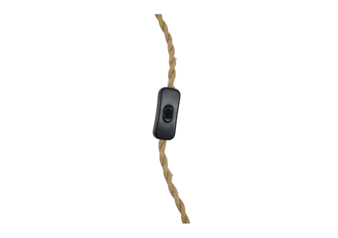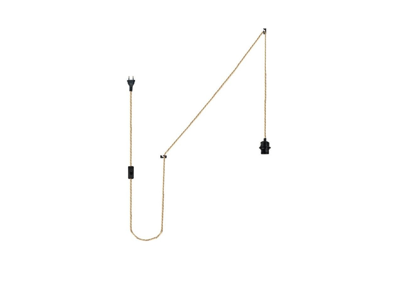 Set de douille E27 avec câble en jute, interrupteur, fiche et clips pour les lampes suspendues. Le câble peut être modifié et réglé pour donner lieu à différentes configurations d'installation grâce aux deux clips inclus dans le kit.