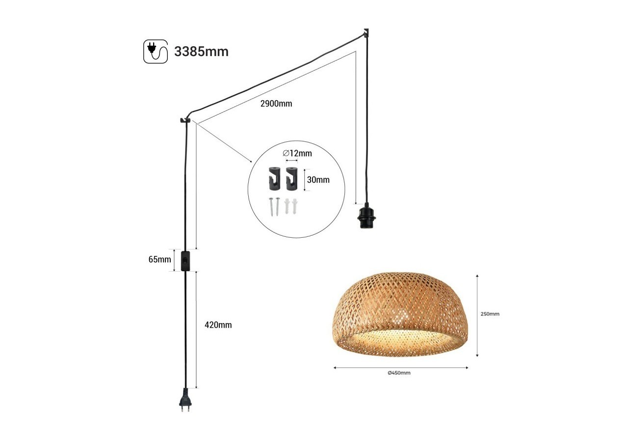 La lampe est compatible avec toutes les ampoules E27 d'une puissance maximale de 60W (non incluses). Vous pouvez choisir parmi trois couleurs de câble (blanc, noir et corde naturelle) en fonction de l'environnement dans lequel vous souhaitez l'installer.