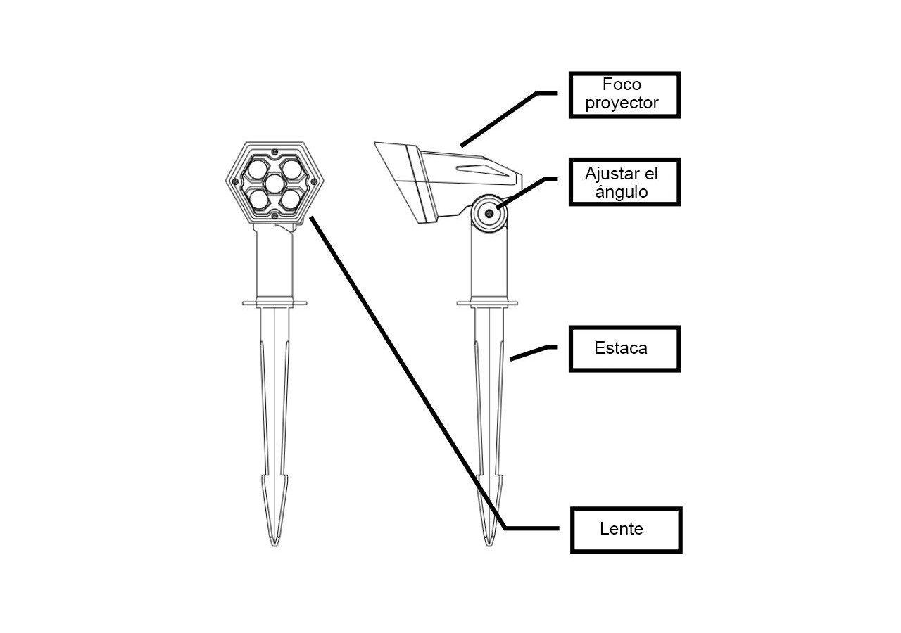 Ce luminairede jardin estmuni d'un piquet à ficher directement dans le sol ou dans un pot de fleur. Son panneau solairecharge le jour pour lui permettre de s'allumer automatiquement à la tombée de la nuit. Les deux spots extérieurintègrent des puces LED SMD2835 de qualité supérieure, durables et à haut rendement lumineux de 240 lumens pour 3W.