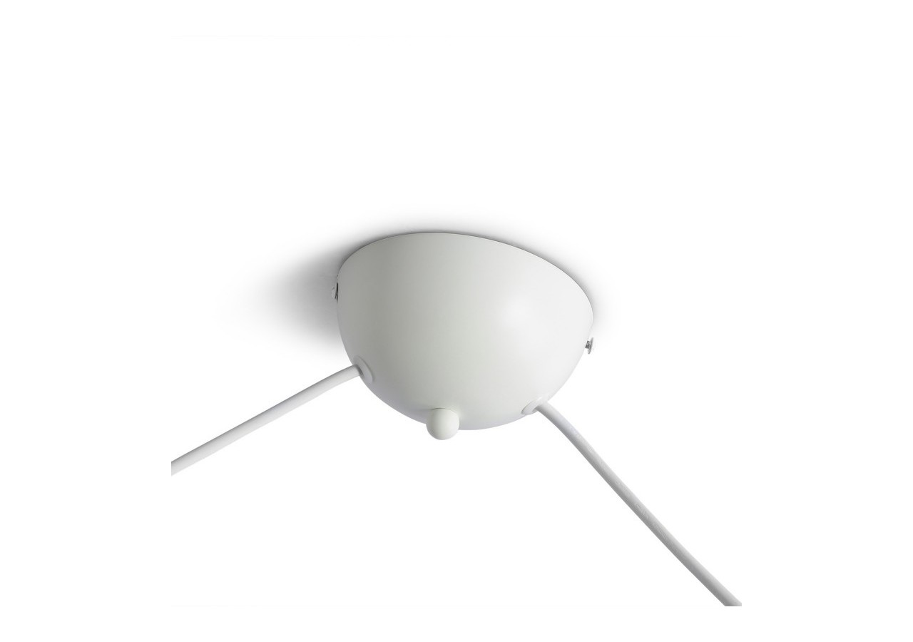 Cette suspension est équipée d'une rosace centrale permettant d'ajuster la hauteur des luminaires selon les préférences de chaque utilisateur. De plus, deux câbles en acier inoxydable, munis de supports de fixation au plafond, permettent de séparer les deux abat-jours et d'obtenir la hauteur désirée.