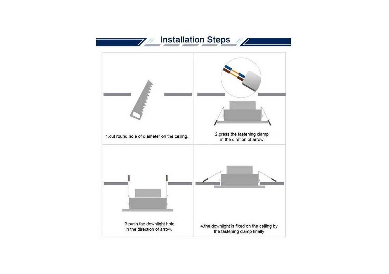 Le downlight LED encastré étanche de 7W est équipé d'un driver "No Flicker" intégré, permettant un branchement direct sur 220-240V/AC. Son installation est simple : il suffit de visser la phase et le neutre à l'arrière et couvrez les connexions avec le couvercle fourni. Le système électrique est protégé contre l'humidité grâce à la vis et à l'écrou arrière.