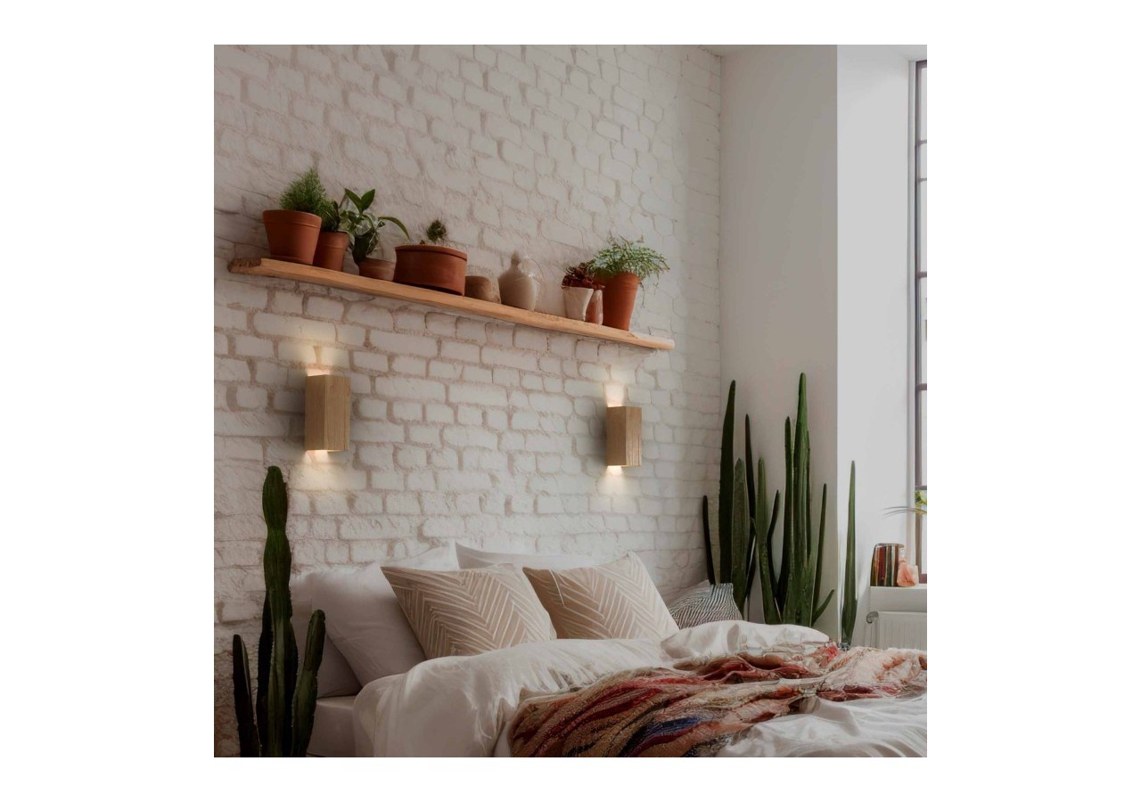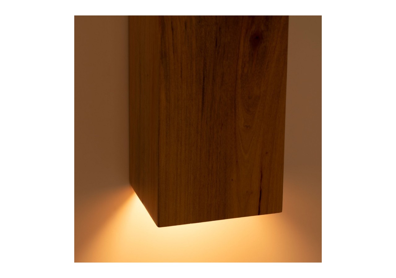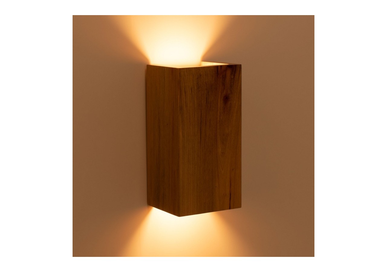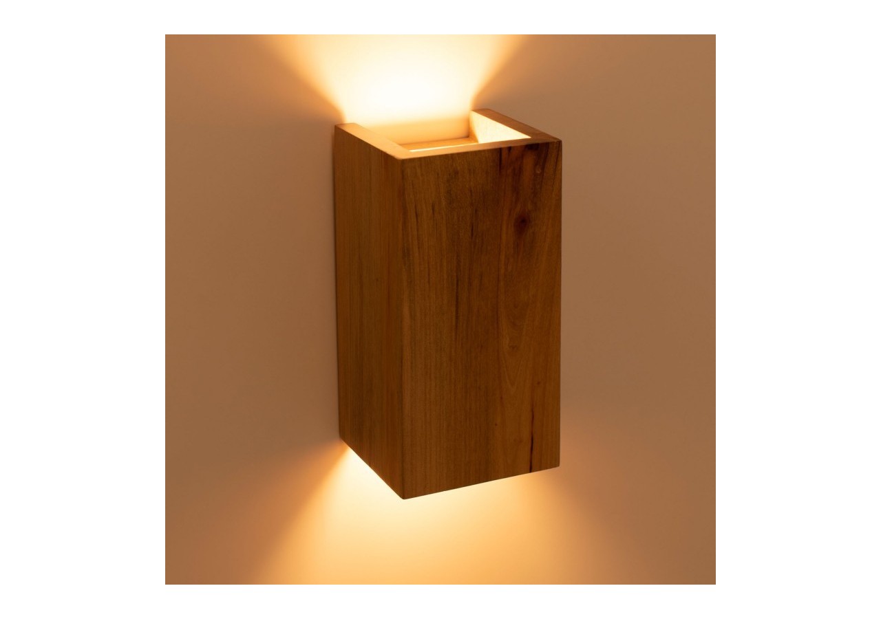 Fabriquée en bois naturel, cette applique présente une forme cubique solide et raffinée, apportant une touche contemporaine et chaleureuse à son environnement.