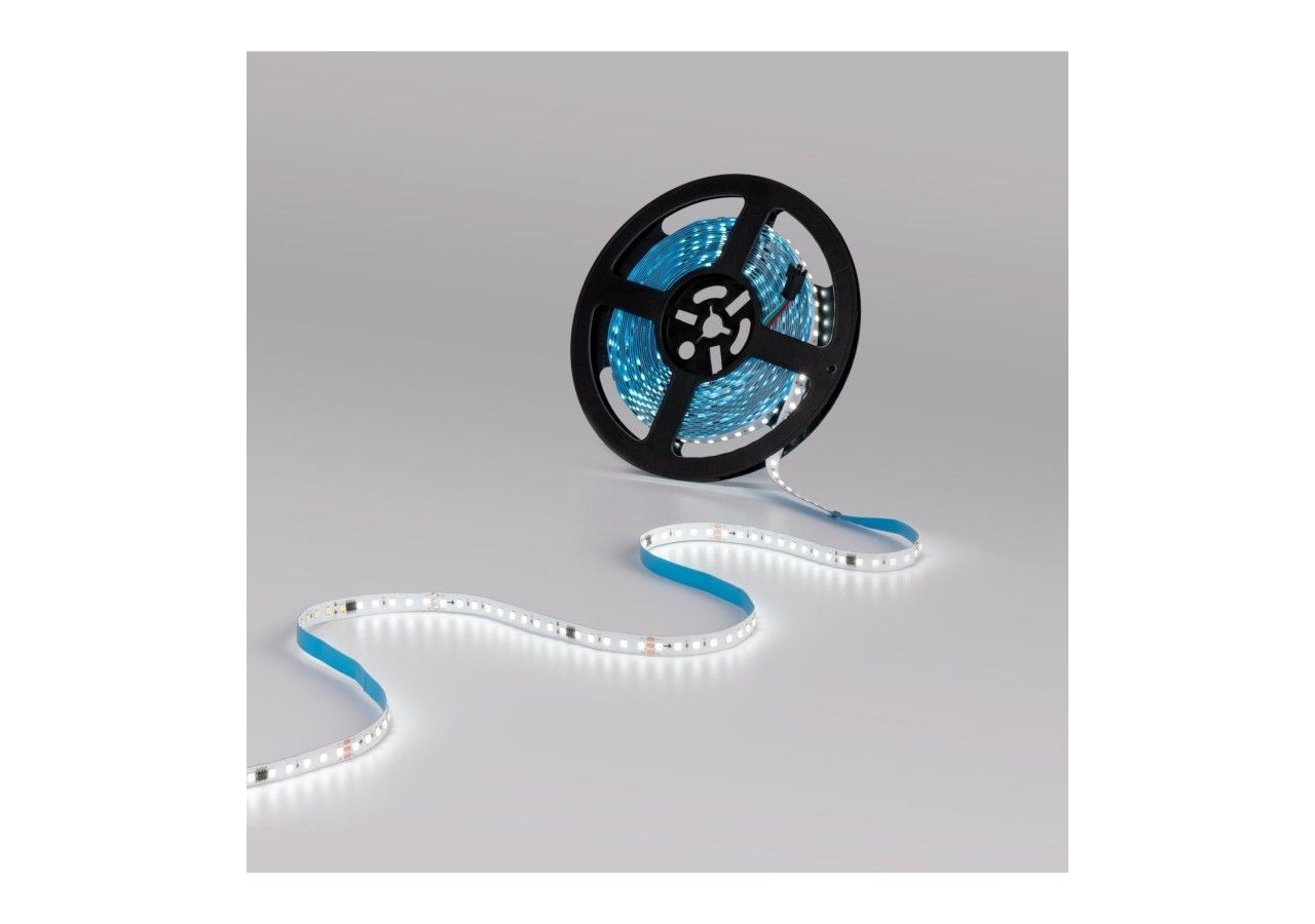 Le ruban LED est pourvu d'un adhésif à l'arrière et est proposé en une bobine de 10 mètres, affichant un indice de protection IP20.