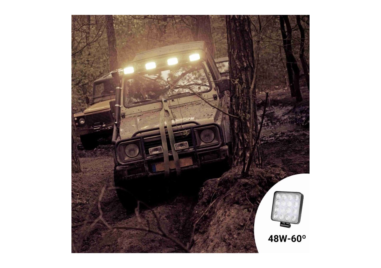 Le phare de travail LED 48W constitue une solution d'éclairage de pointe spécialement conçue pour les véhicules tout-terrain, les camions et bien plus encore. Grâce à sa conception robuste et à sa technologie avancée, ce projecteur garantit des performances optimales, quel que soit l'environnement.