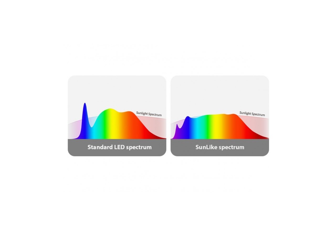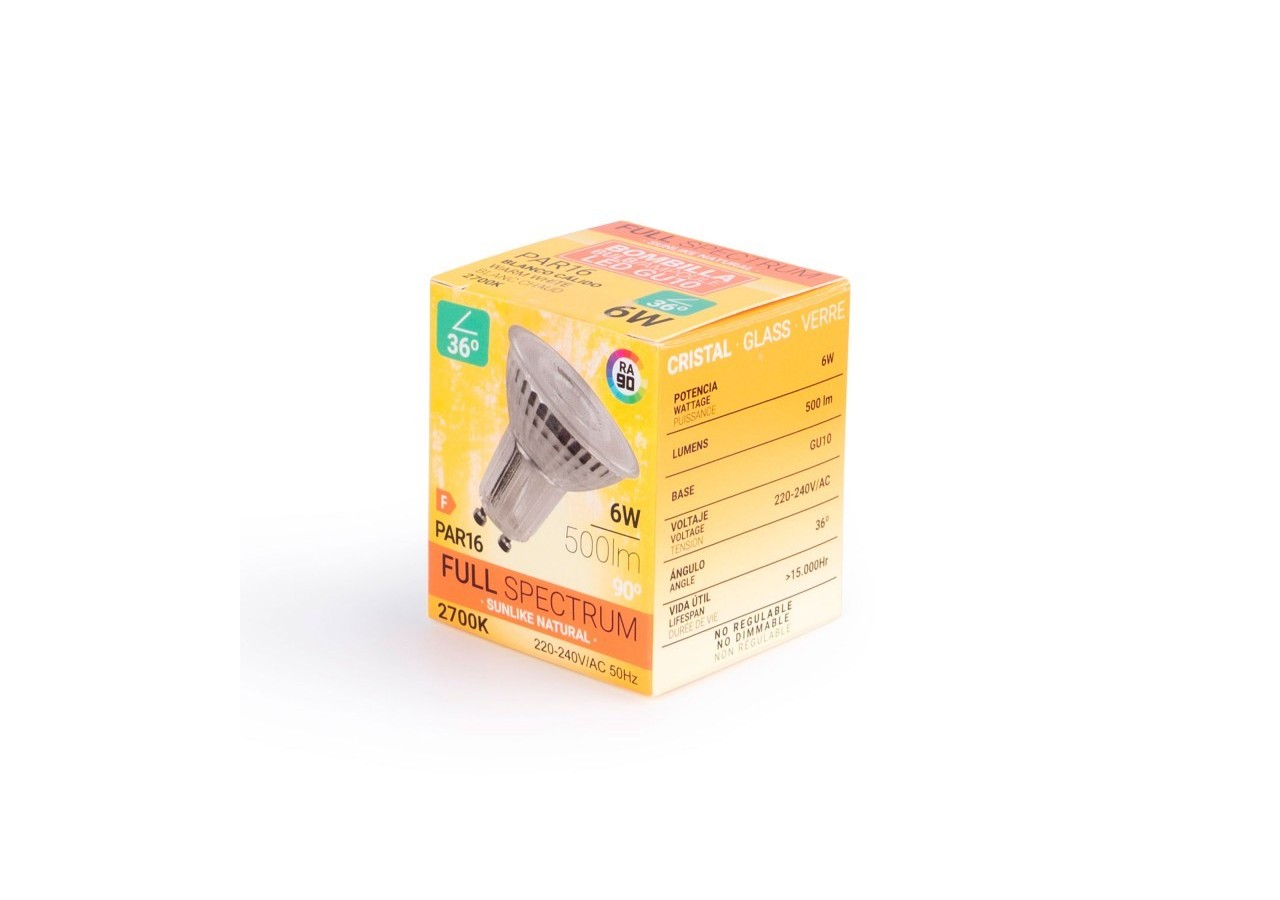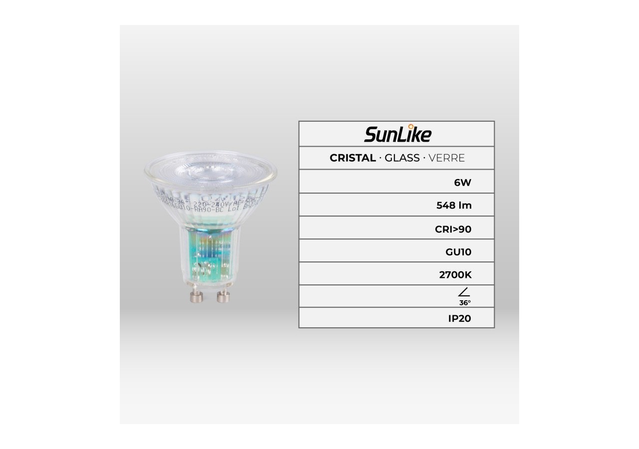 L'ampoule LED GU10 6W à spectre complet "SUNLIKE" révolutionne l'éclairage grâce à une technologie novatrice qui élimine le pic bleu de la courbe du spectre lumineux, reproduisant ainsi fidèlement la lumière naturelle émanant du soleil.