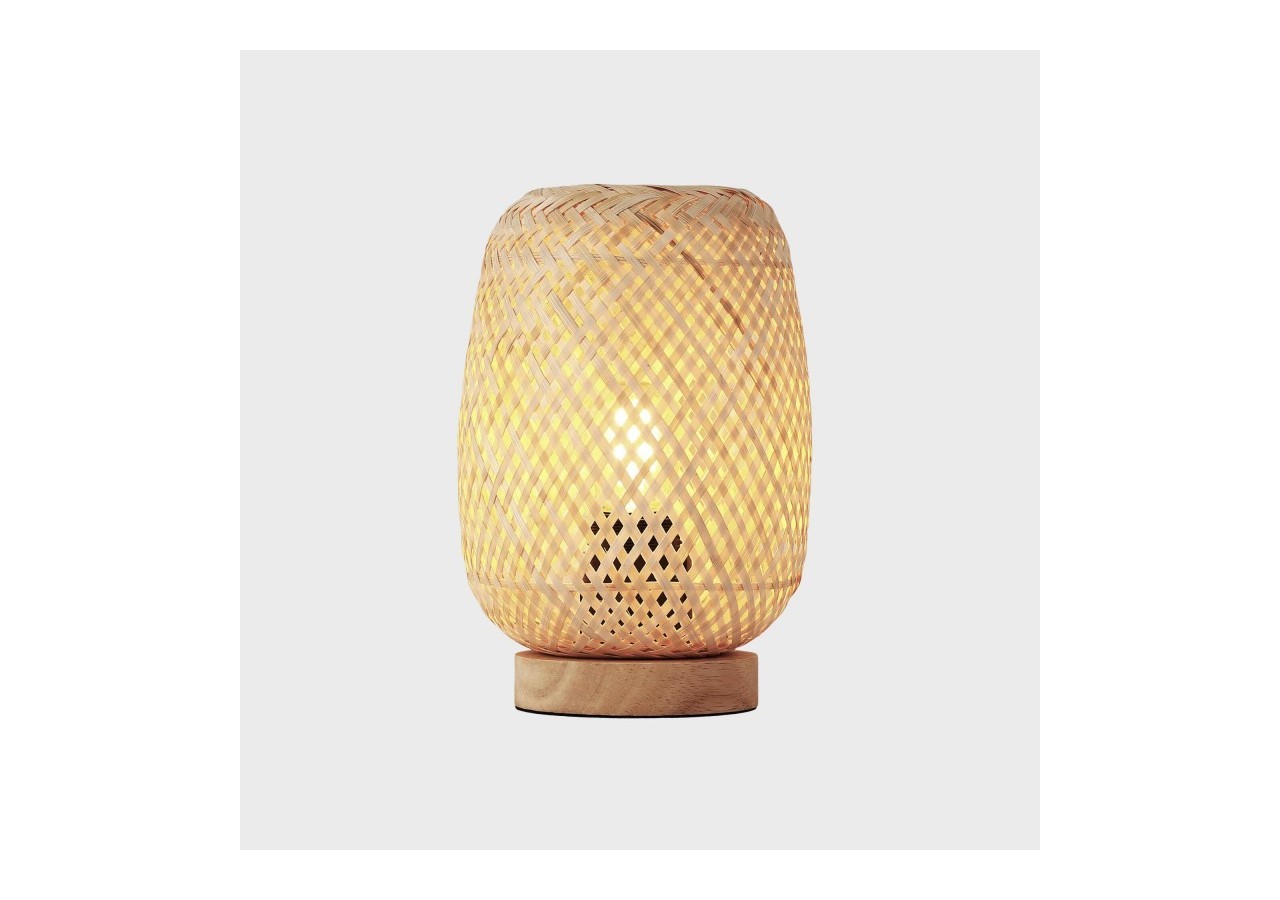 Avec un design simple et élégant, cette lampe est munie d'une base en bois naturel et d'un abat-jour en treillis d'osier, ce qui lui confère à la fois chaleur et style.