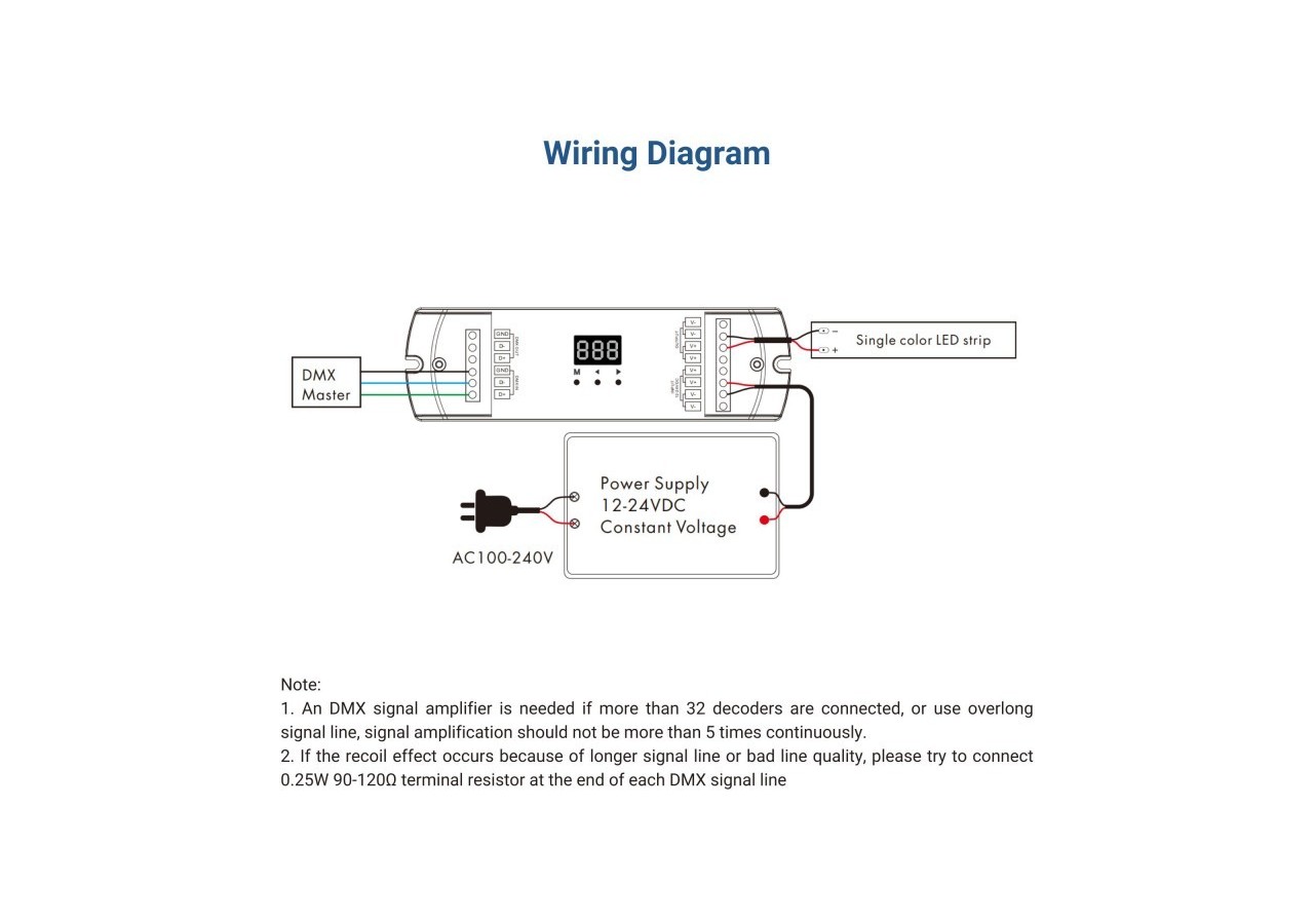 Le décodeur DMX512D représente une solution avancée et complète pour le contrôle de l'éclairage LED. Il offre une sortie à tension constante sur un canal, avec une capacité de courant de 15A et une puissance maximale de 360W.