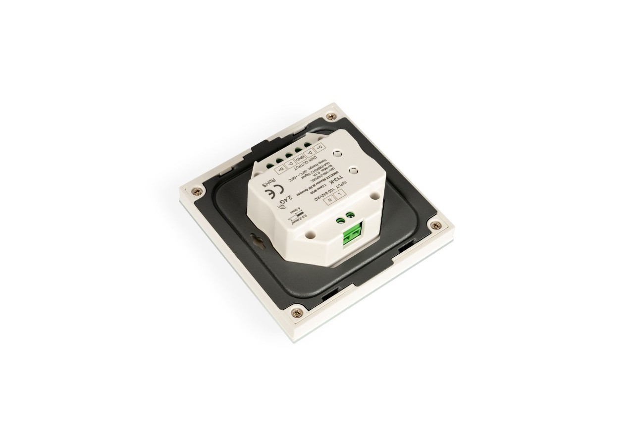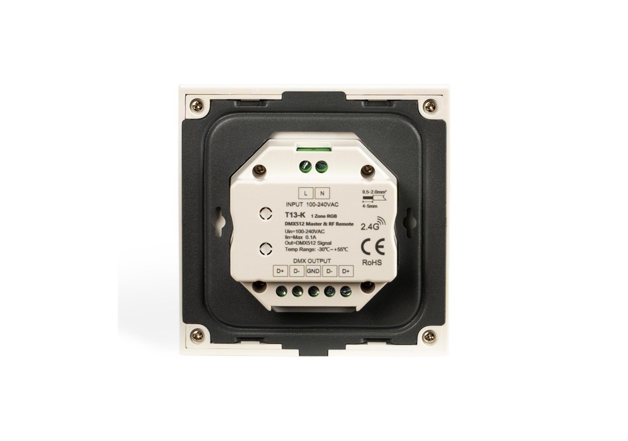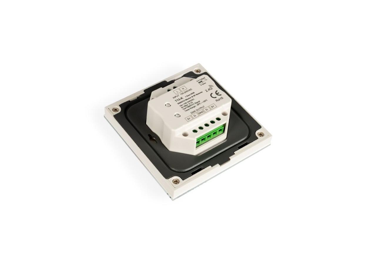 Le contrôleur DMX RGB présente un design élégant en blanc et offre une double fonctionnalité en tant que master DMX512 ou télécommande RF.
