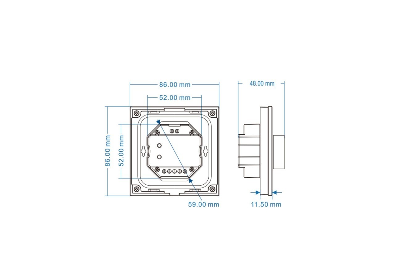 Avec ses dimensions standard, il peut s'intégrer parfaitement dans une boîte d'encastrement universelle (UE).