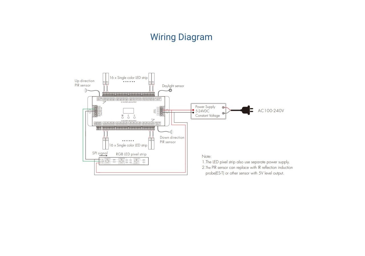 De plus, il dispose de 2 groupes de sorties SPI et prend en charge jusqu' à 28 types de rubans LED numériques RGB (IC), offrant une configuration simple et flexible pour le type d'IC et l'ordre des couleurs (R/G/B).