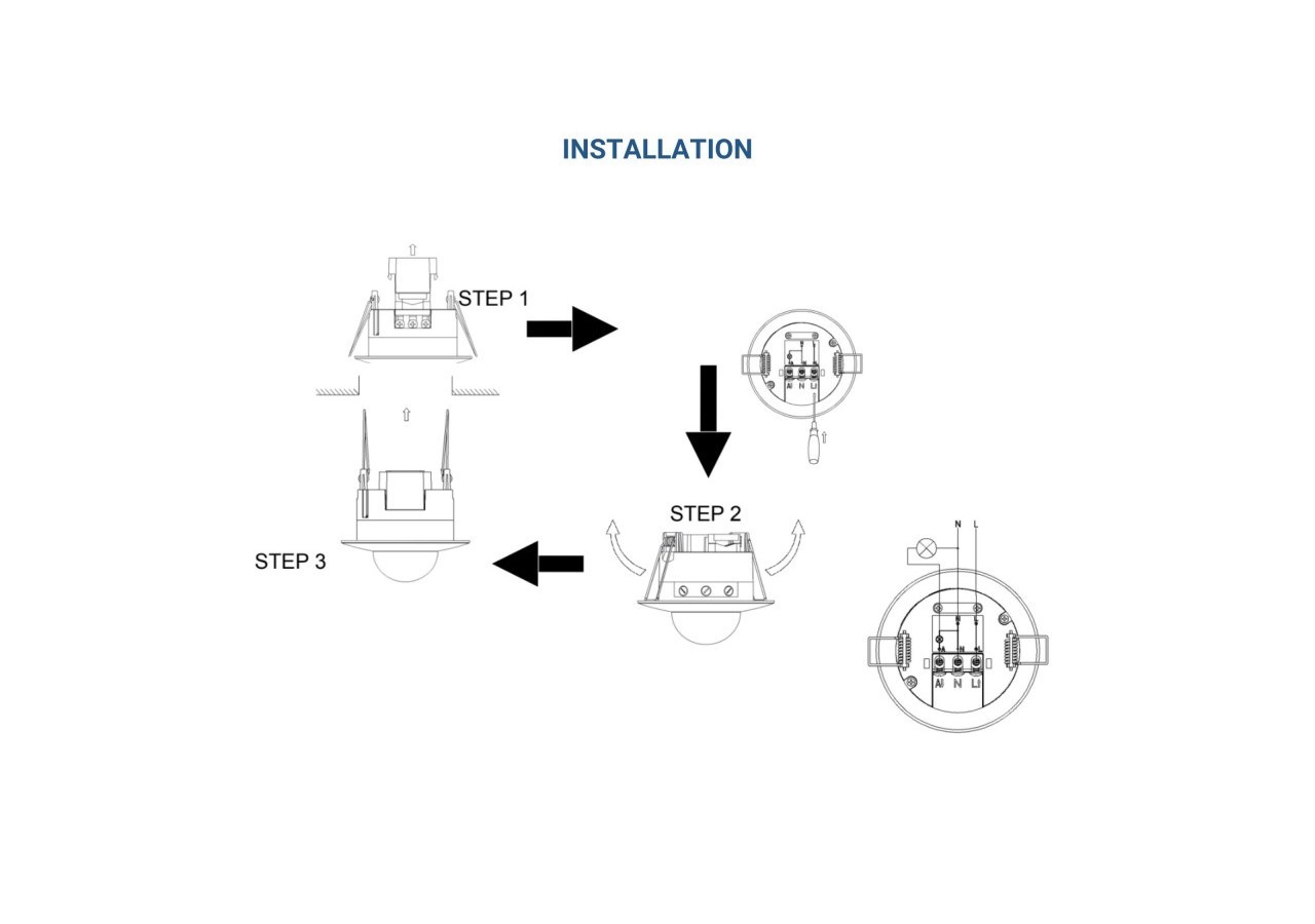 Ce capteur fonctionne de manière adaptative, aussi bien de jour que de nuit, en ajustant la sensibilité de la détection lumineuse. De plus, il offre la flexibilité de régler la distance de détection jusqu' à 25 mètres, ce qui le rend adaptable à divers environnements. Il est également possible de programmer le temps de veille, déterminant ainsi la durée pendant laquelle le luminaire reste éteint après que le capteur n'a plus détecté de présence.