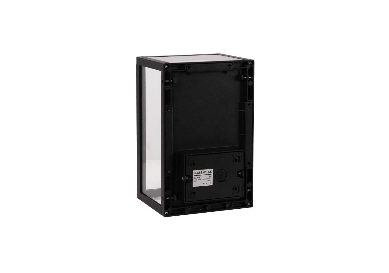 L'applique murale d'extérieur "Glass House" marie avec élégance un corps en aluminium à la finition noire mate avec un diffuseur en verre transparent, offrant un design qui enrichit l'esthétique de tout espace.