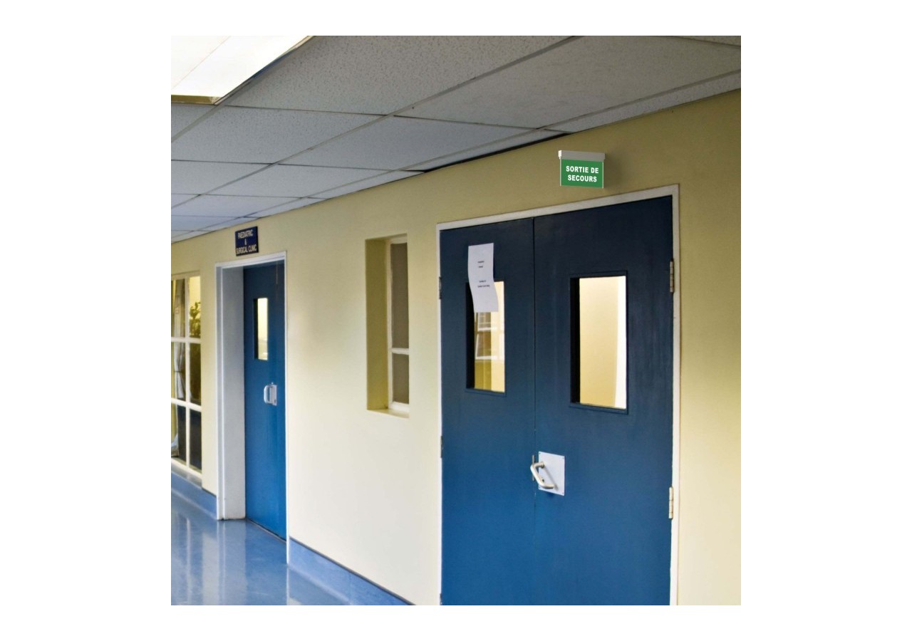 Ce luminaire de secours est conçu pour une installation en surface, tant au plafond qu'au mur. Il suffit de l'installer en connectant le câblage électrique, de manière simple et rapide, et de la fixer à l'aide de vis sur la surface d'installation.