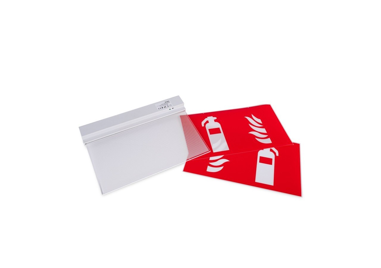 Elle est équipée de deux étiquettes en acétate identiques, faciles à fixer sur la plaque transparente prévue à cet effet, assurant une signalisation claire pour lalocalisationde l'extincteur, une information cruciale en cas d'incident.