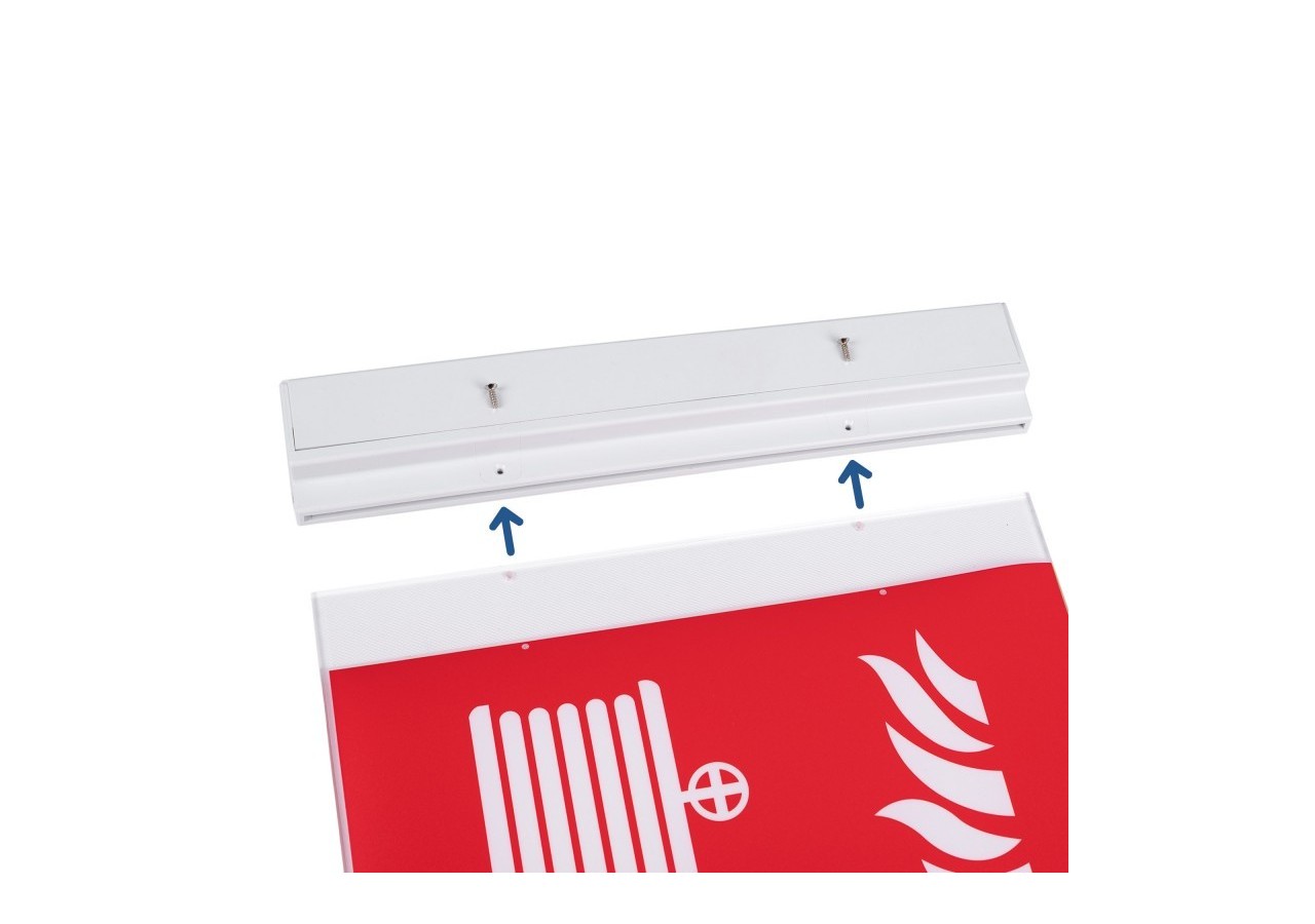 Ce luminaire de secours est conçu pour une installation suspendue au plafond. Les câbles de suspension et tout le matériel de montage requis sont inclus.
