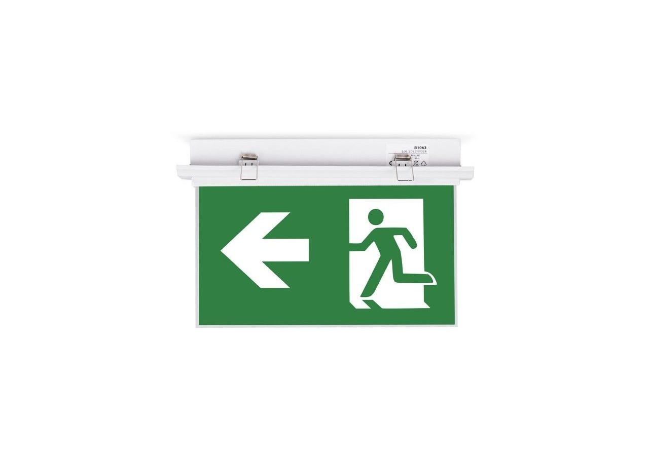 Elle est équipée de deux étiquettes en acétate identiques, faciles à fixer sur le luminaire, assurant une signalisation claire pour la localisation de la sortie de secours,donnantune information claire et précise sur la direction à prendre en cas d’urgence