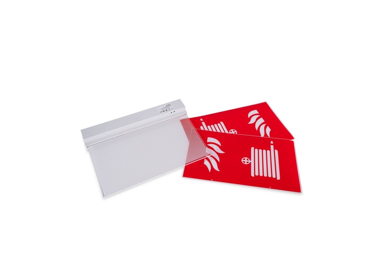 Elle est équipée de deux étiquettes en acétate identiques, faciles à fixer sur la plaque transparente prévue à cet effet, assurant une signalisation claire pour la localisationde la bouche d'incendie, une information cruciale en cas d'incident.