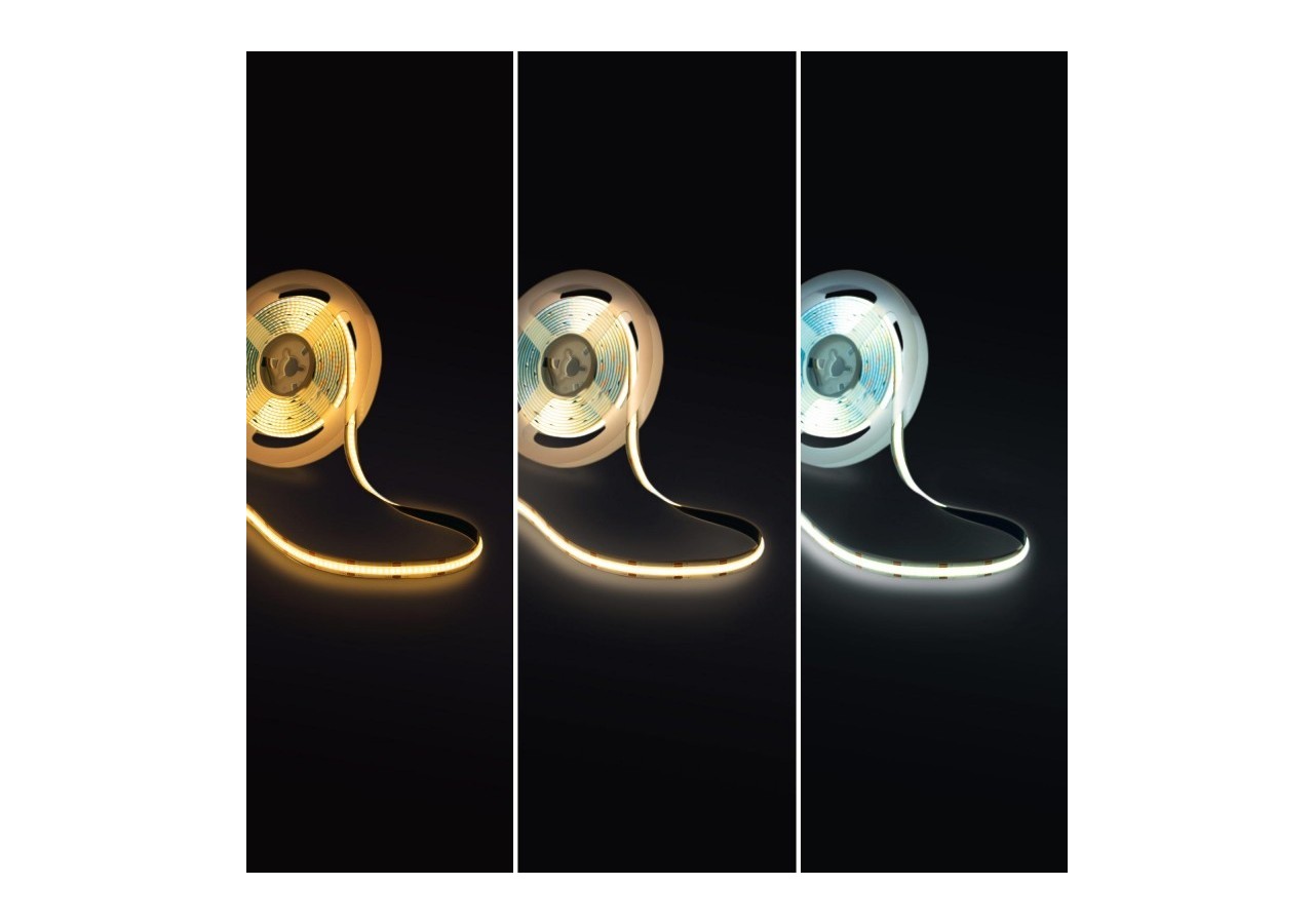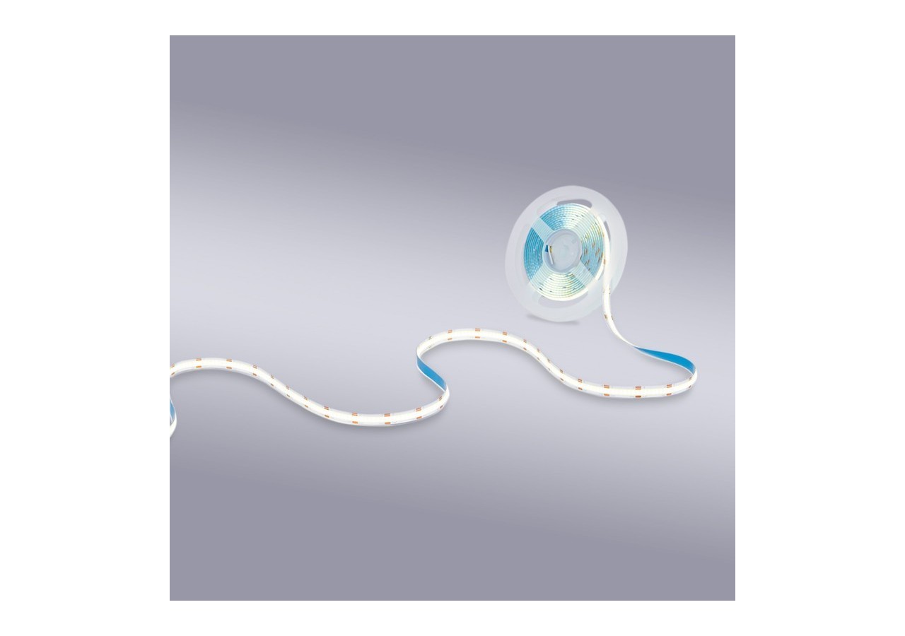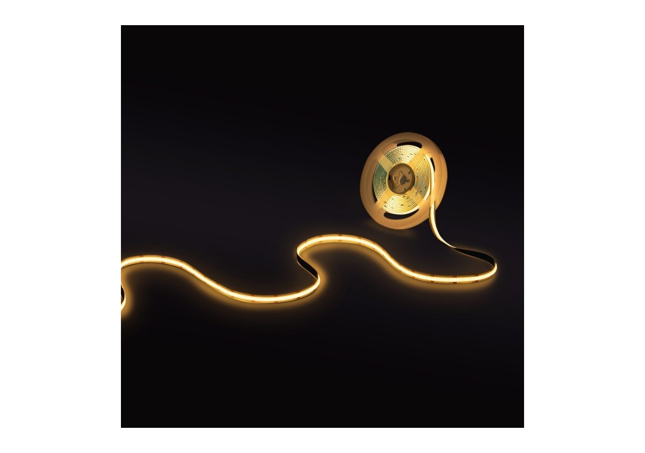 Ce ruban LED intègre la technologie COB, offrant un éclairage continu et uniforme sans points visibles, idéal pour garantir une illumination homogène. Il est particulièrement recommandé pour des tâches nécessitant une surface réfléchissante ou l'utilisation de diffuseurs transparents.