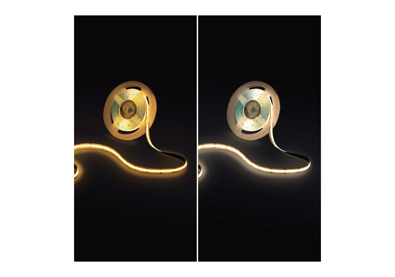 Le ruban LED COB 24V DC offre un éclairage remarquablement lumineux et uniforme, éliminant tout effet d'ombres ou de points lumineux perceptibles, une amélioration notable par rapport aux rubans LED conventionnels.