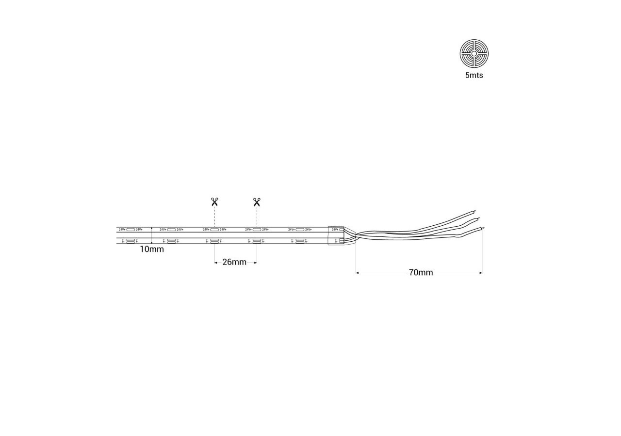 Fine et flexible, cette bande LED permet des coupes tous les 26mm, maximisant ainsi son utilisation. Son indice de rendu des couleurs (IRC) supérieur à 90 garantit une restitution fidèle des couleurs.