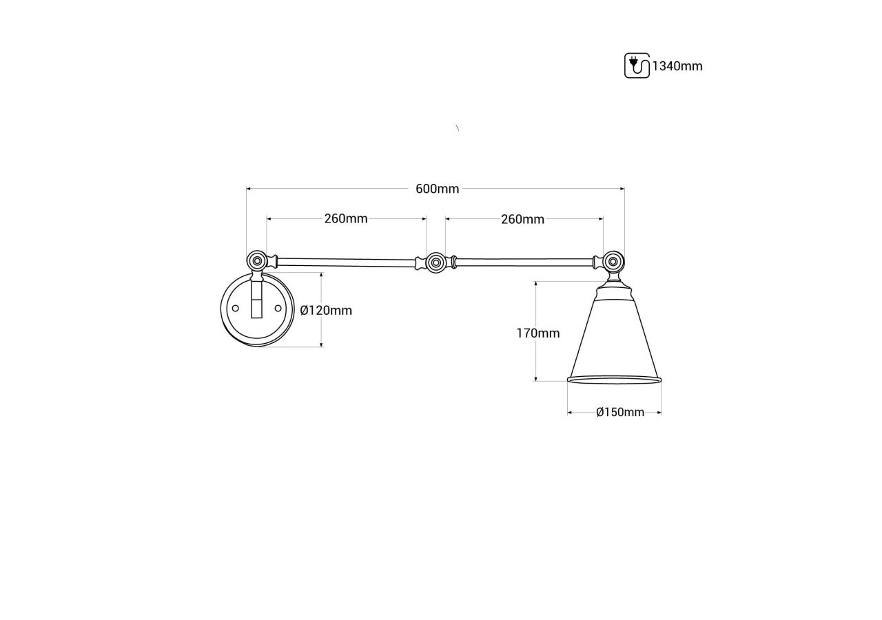Elle est équipée d'une douille compatible avec une ampoule E27 (non incluse) et se relie à un point lumineux, ne disposant pas d'un interrupteur propre.