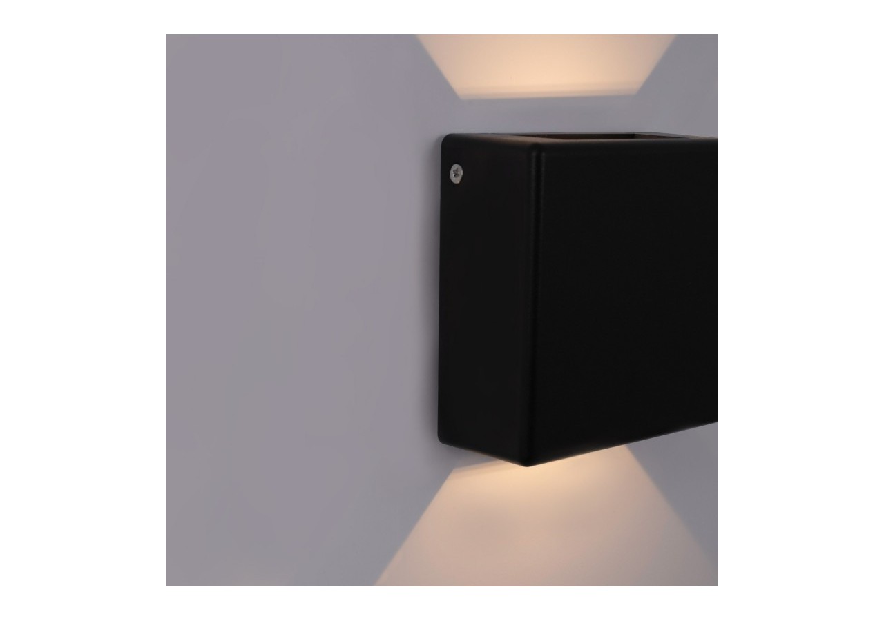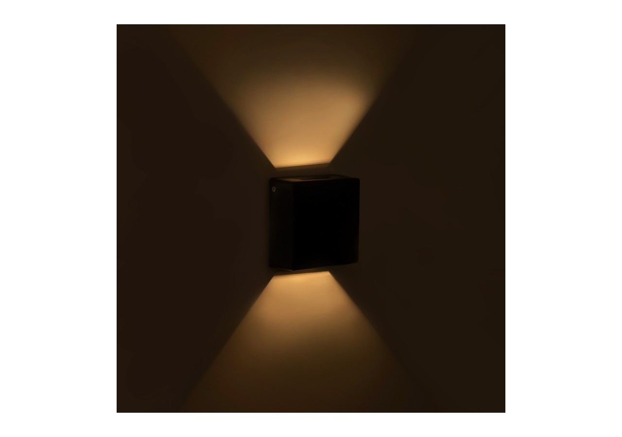 Cette lampe murale se démarque par son design original de forme carrée, émettant de la lumière sur ses deux côtés à travers des faisceaux lumineux.