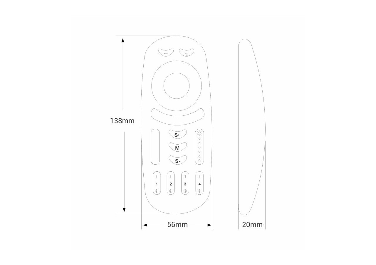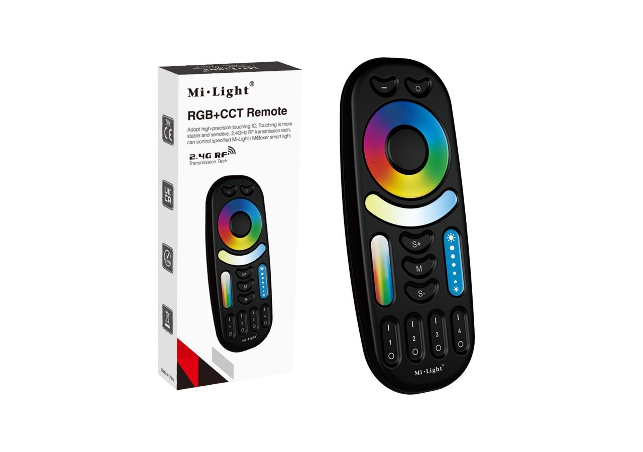 Elle permet de gérer jusqu' à 4 zones distinctes et offre la possibilité de créer des groupes et des combinaisons personnalisées selon les besoins. Il convient de noter qu'un contrôleur "Mi-Light" est requis pour chaque zone à contrôler. En d'autres termes, pour contrôler 4 zones de manière indépendante, 4 contrôleurs et une télécommande distincte sont nécessaires.