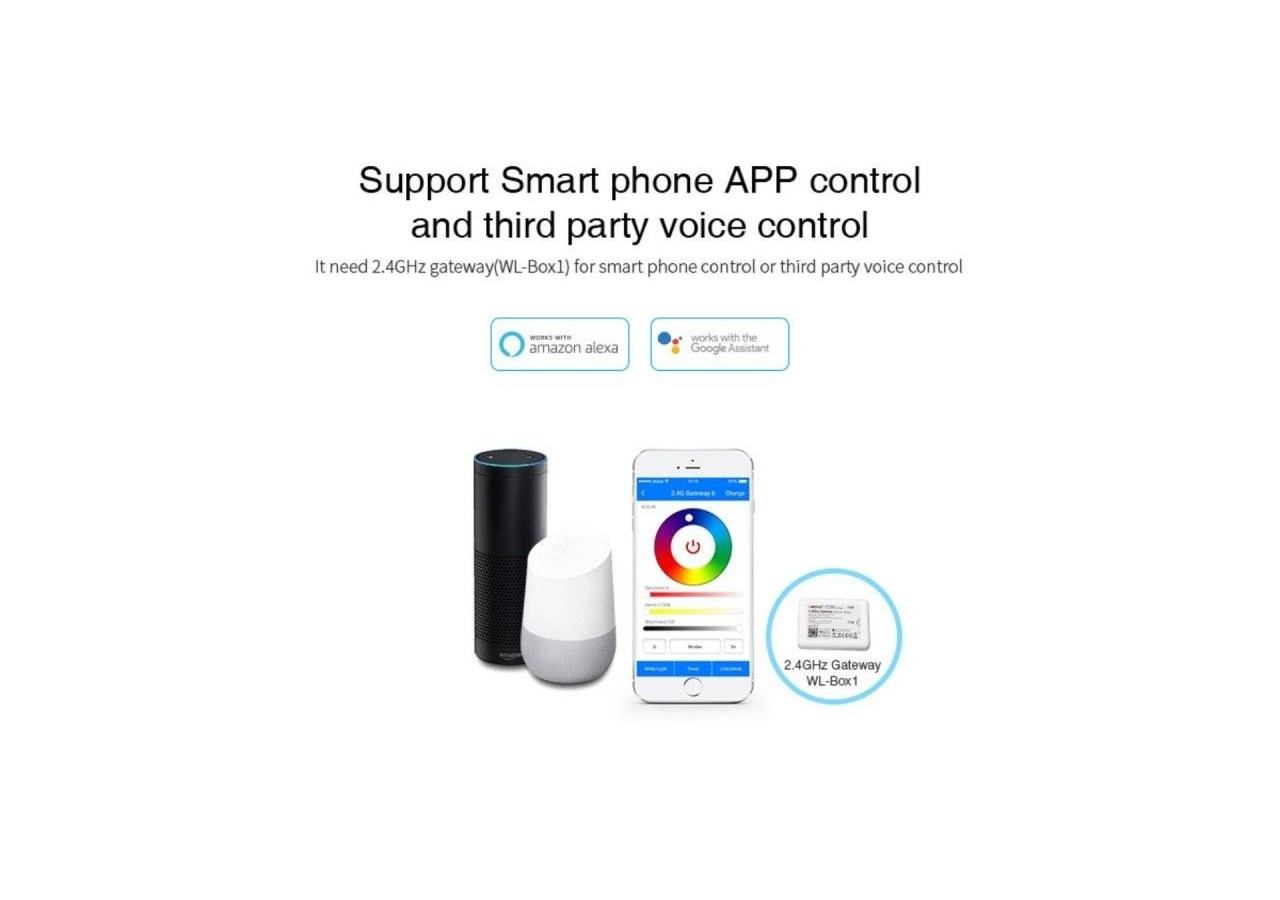 De plus, il est compatible avec une variété de contrôleurs Mi-Light / MiBoxer RGB + CCT et les télécommandes à radiofréquence RGB + CCT, offrant une polyvalence d'utilisation et une compatibilité avec différents systèmes de contrôle.