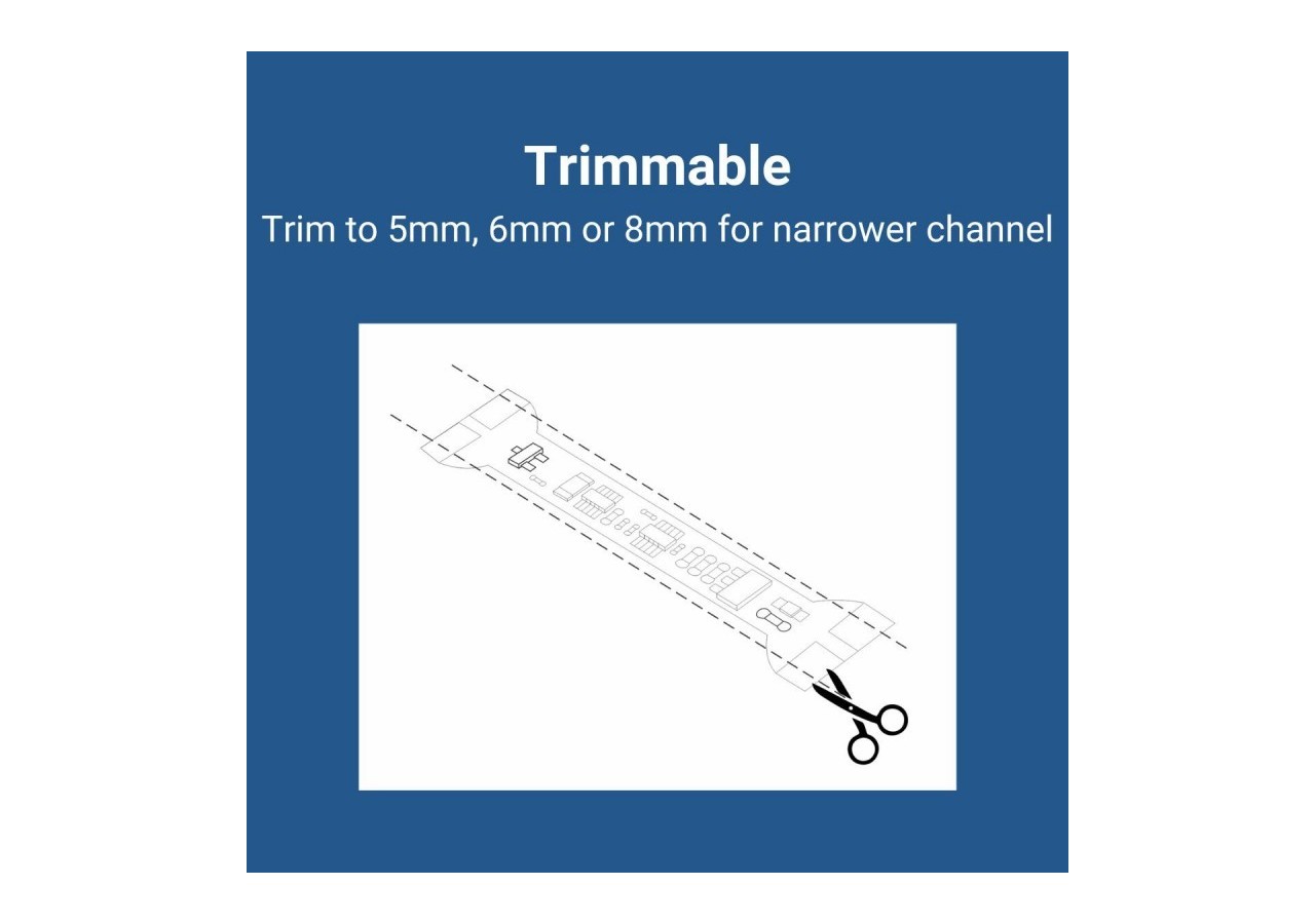 Installé sur des circuits imprimés de 10 mm de large, ce détecteur de présence peut être ajusté aux extrémités pour s'adapter à différentes largeurs de rubans LED, variant de 5 mm à 10 mm.