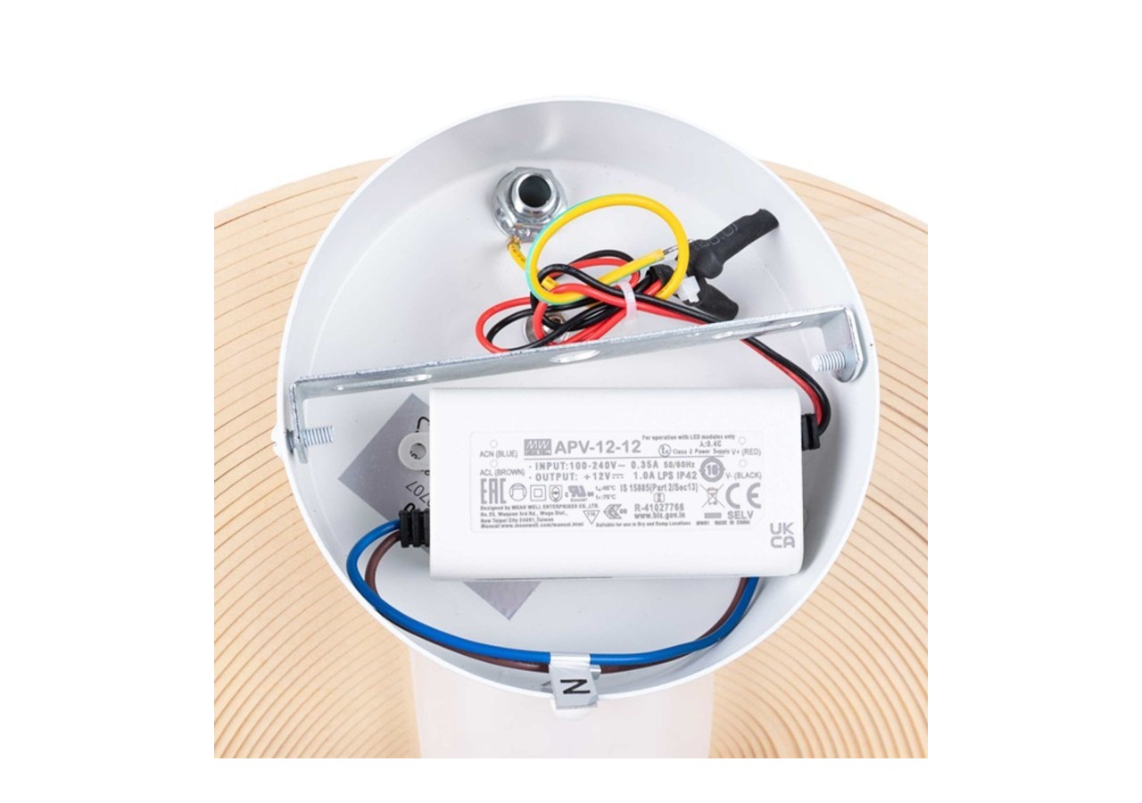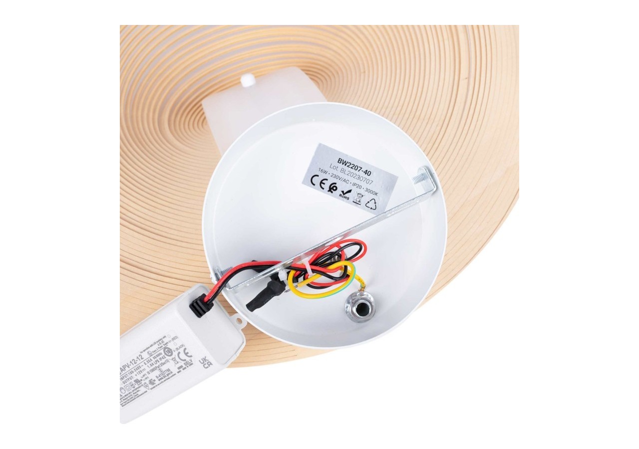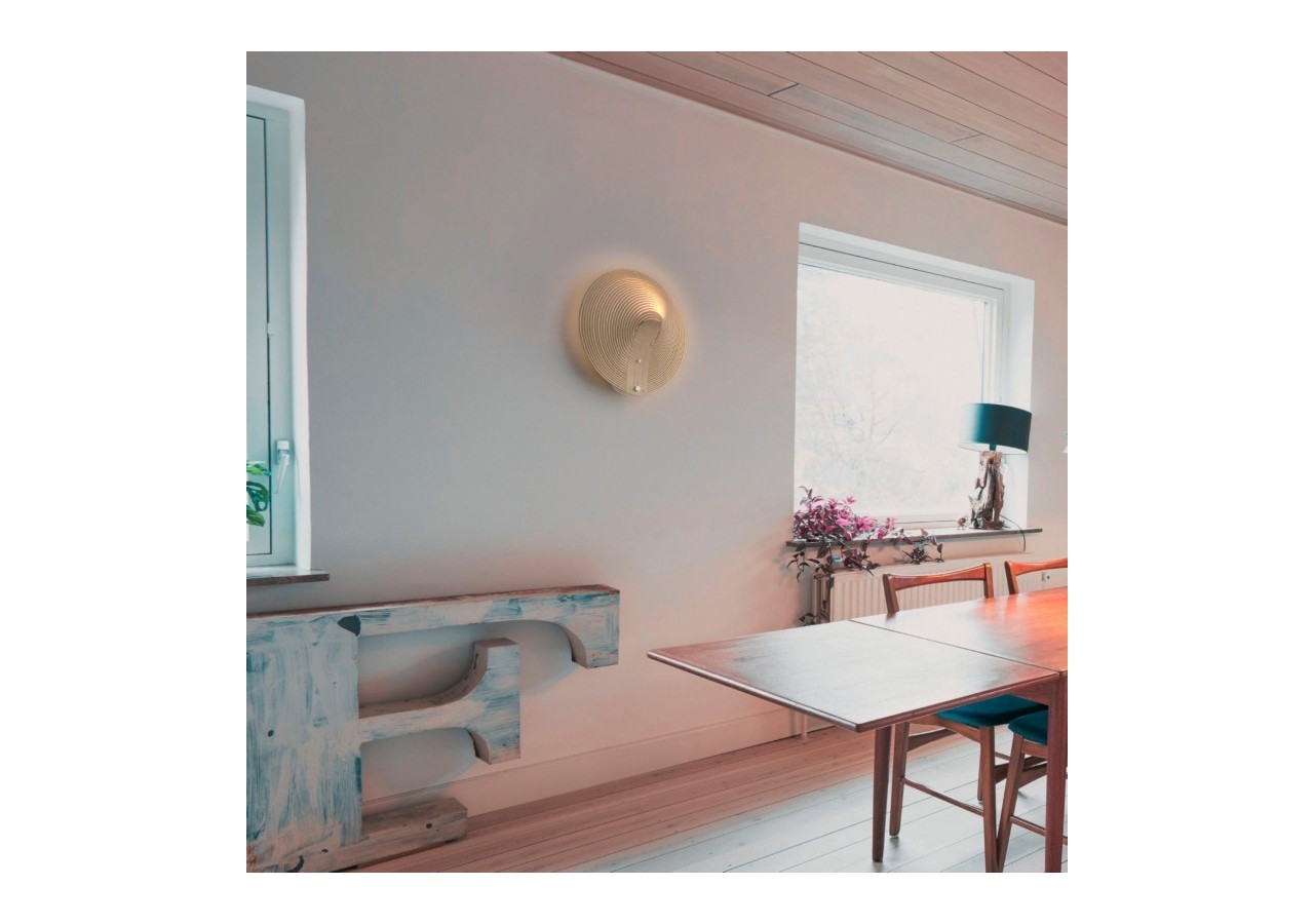 à l'intérieur, la lampe intègre une source de lumière LED chaude qui émet un éclairage diffus, créant ainsi une ambiance confortable et relaxante. Cette applique se présente comme une sculpture contemporaine qui transforme tout espace par son élégance et son style. Un mariage harmonieux entre l'art et la fonctionnalité.
