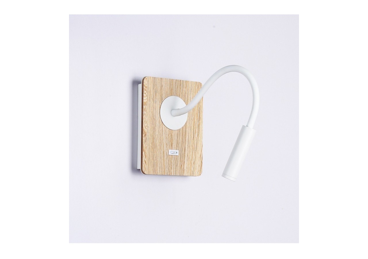 Cette lampe murale offre une double fonctionnalité en combinant un bras flexible et un spot LED ajustable pour une utilisation pratique en tant que lampe de lecture.