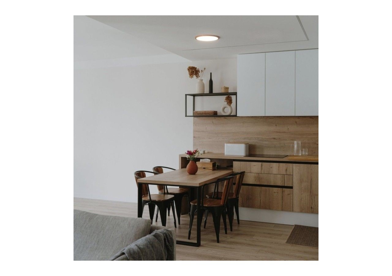 Les dimensions de ce luminaire permettent son installation dans des plafonds bas ou des zones où l'encastrement n'est pas possible, car il n'émerge pas excessivement de la surface du plafond, s'intégrant discrètement dans la décoration de la pièce. Son design simple en font un élément facile à intégrer dans tout type d'environnement et de style décoratif.