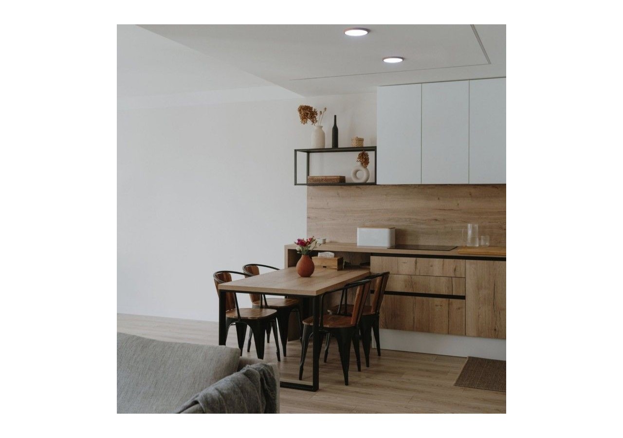 Les dimensions de ce luminaire permettent son installation dans des plafonds bas ou des zones où l'encastrement n'est pas possible, car il n'émerge pas excessivement de la surface du plafond, s'intégrant discrètement dans la décoration de la pièce. Son design simple en font un élément facile à intégrer dans tout type d'environnement et de style décoratif.