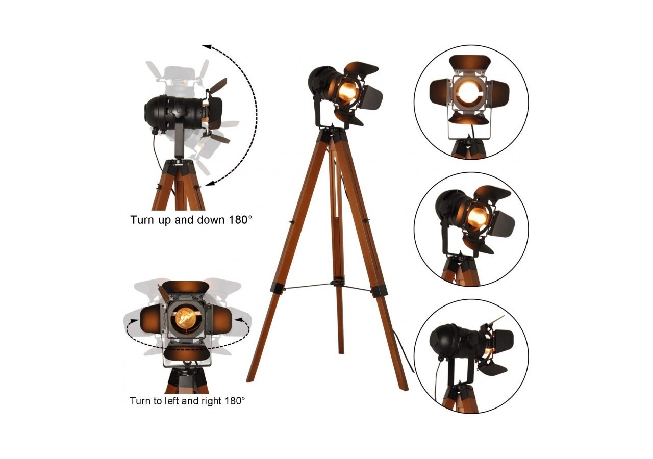 Émerveillez vos invités en intégrant le lampadaire vintage "Cinema", équipé d'un trépied en bois, dans votre décor. Placez-le avec stratégie dans un coin pour un éclairage élégant, dans votre salon pour sublimer votre canapé ou dans votre chambre pour une touche de personnalisation - à vous de choisir l'emplacement qui suscitera la créativité !