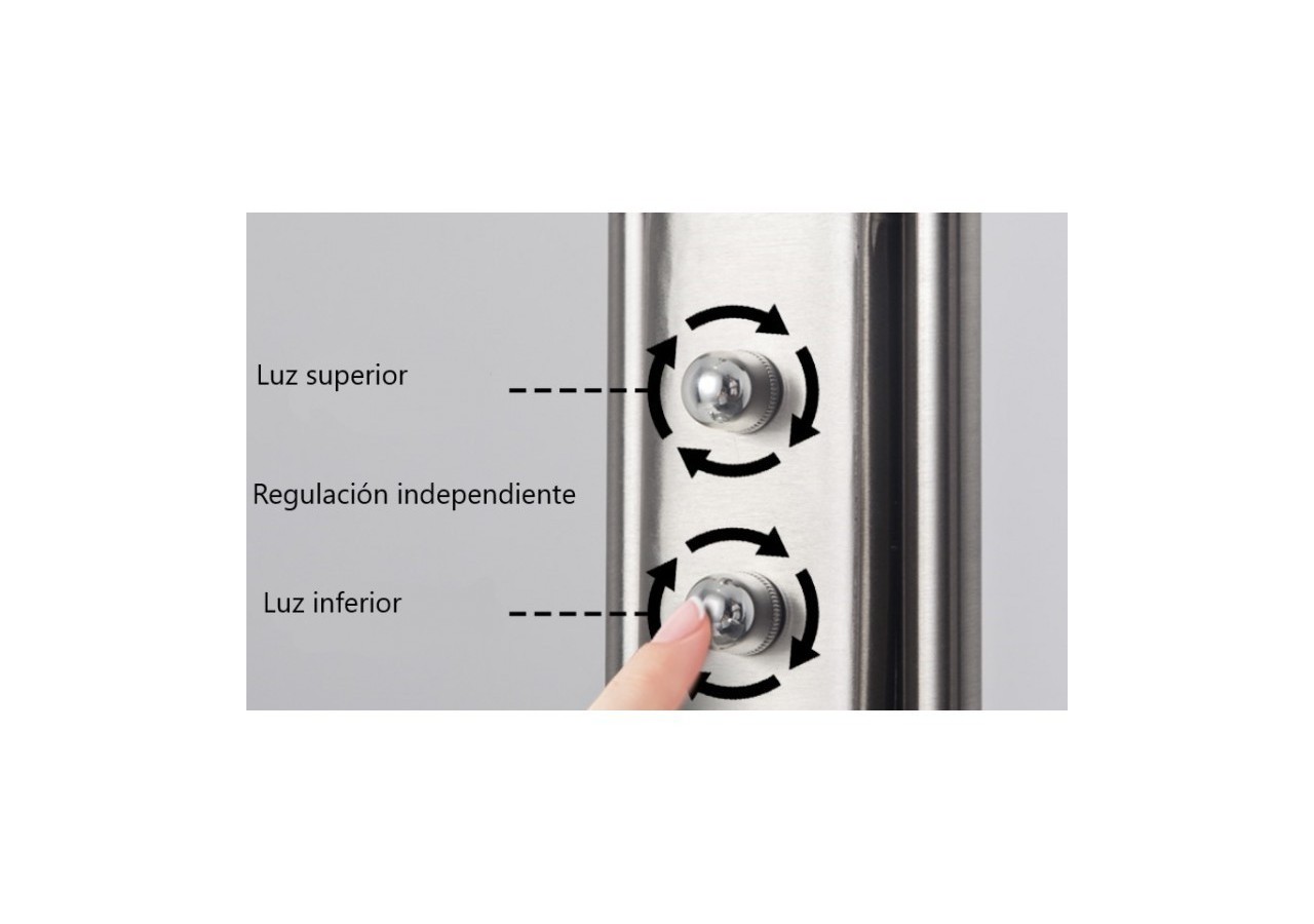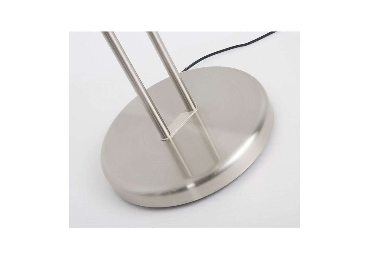 Lampadaire moderne à LED au design minimaliste et à la structure tubulaire en finition chrome satiné de 1785mm de haut. La lampe principale émet une lumière dirigée vers le plafond, grâce à la LED intégrée de 18W de puissance et 1400 lumens en lumière blanche neutre 4000K. Deux boutons permettent de régler l'intensité du lampadaire et de la liseuse led indépendemment.
