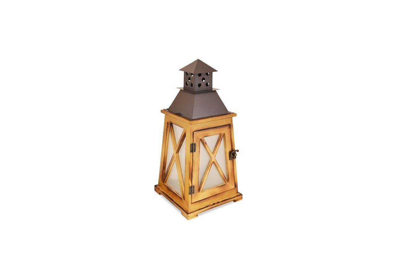 La lanterne LED Gobel est idéale pour décorer des environnements vintages aussi bien intérieurs qu'extérieurs. Son design élégant alliant le métal noir et le bois ainsi que son verre glacé en font un élément parfait pour des ambiances vintage. La lanterne dispose d'une anse qui permet de la suspendre à des murs ou à n'importe quel endroit afin d'apporter un meilleur éclairage et un style unique.
