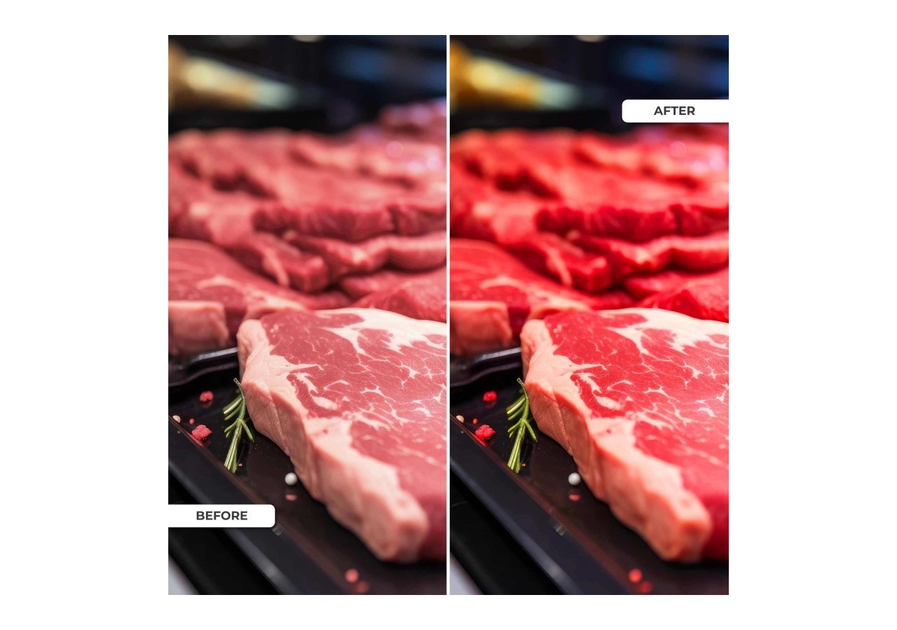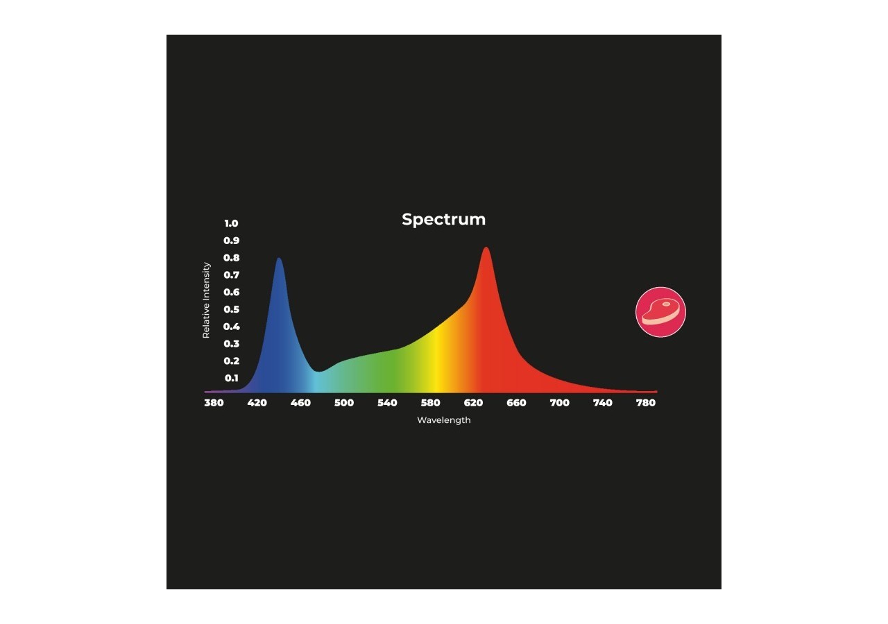 Sans rayons UV ou IR, il retarde le processus de décoloration de la viande, prolongeant ainsi sa durée d'exposition tout en maintenant son aspect frais et attractif.