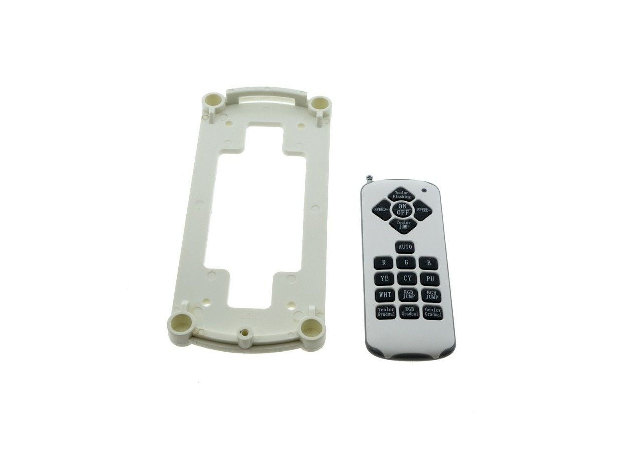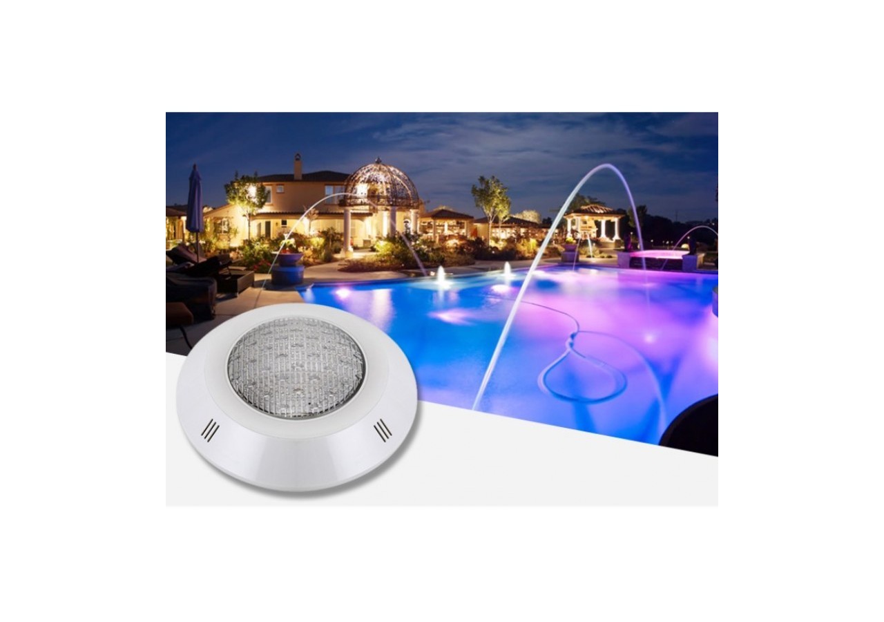Spot LED24Wpourpiscine, de type RGB pour un éclairage multicolore. La télécommande à infrarouges fournie permet de changer de programme et de faire défiler les couleurs à votre convenance.