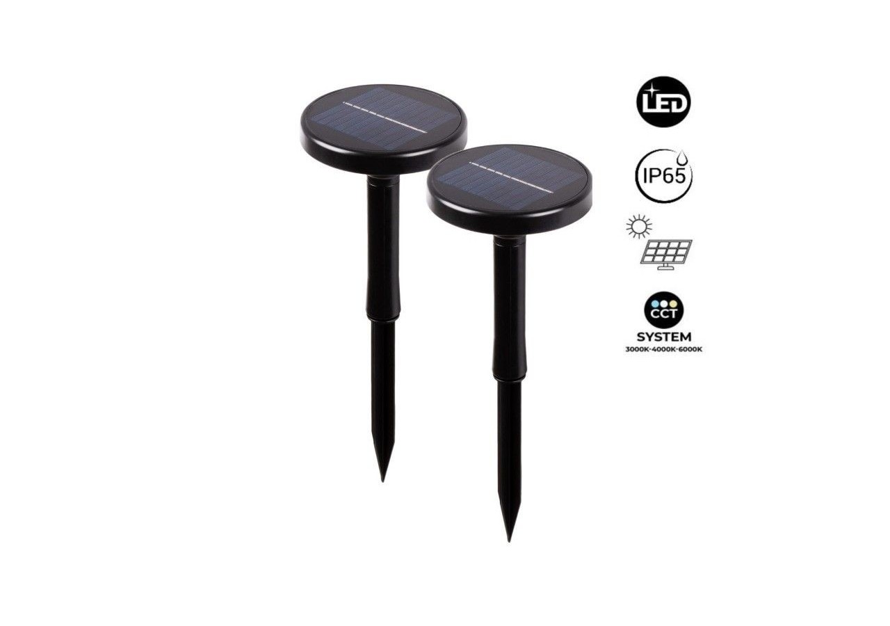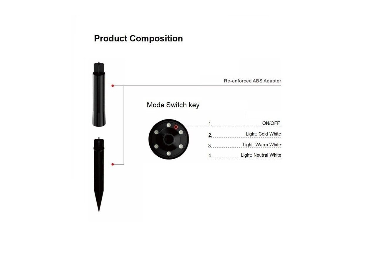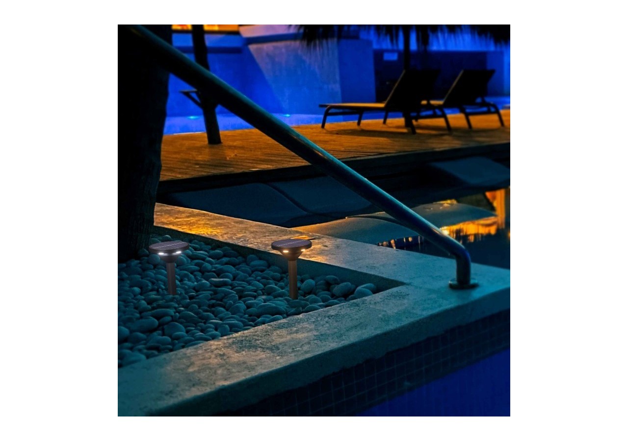 Chaque luminaire est équipé de puces LED SMD303 de 1W et d'un pic à planter dans le sol, un pot, l'herbe ou le sable. Il est recommandé de les installer dans un endroit exposé directement à la lumière du soleil, en faisant attention à l'angle pour une charge efficace de la batterie. Leur temps de charge total est estimé à 4-6h, offrant une autonomie maximale de 12h.