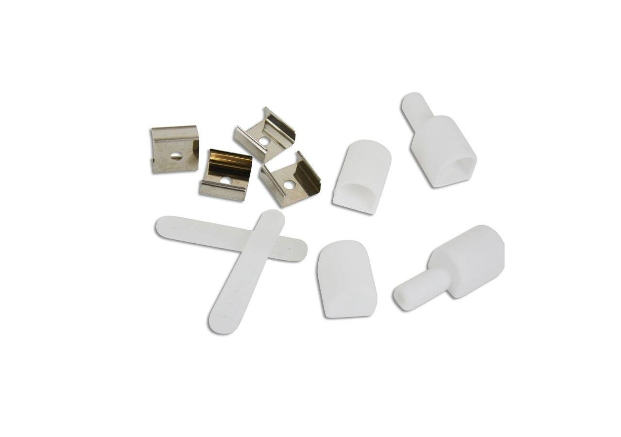 Le kit comprend tous les éléments nécessaires à l'installation (agrafes et capuchons), pour une mise en place très simple et sans outils particuliers.