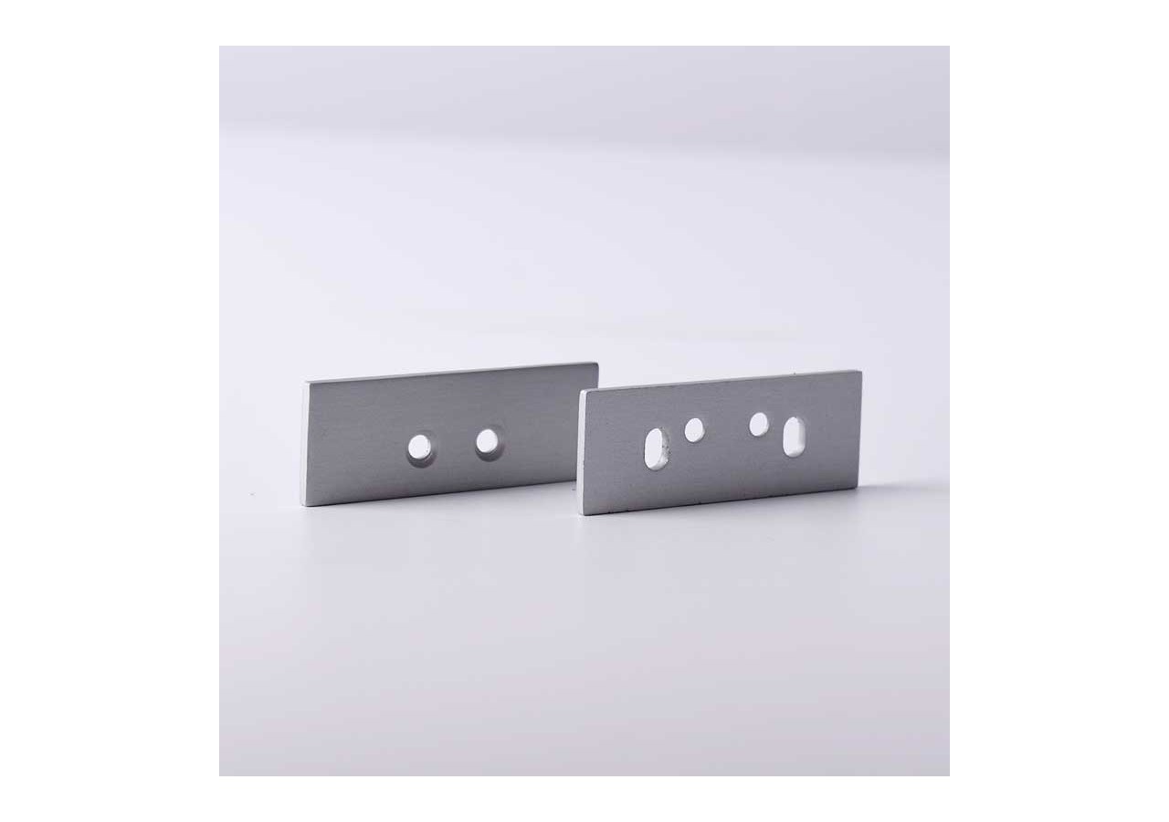 Embout de finition avec et sans trou pour compléter l'installation du profilé en aluminium de type lèche-mur haut/bas avec la référence BPERF18X49.