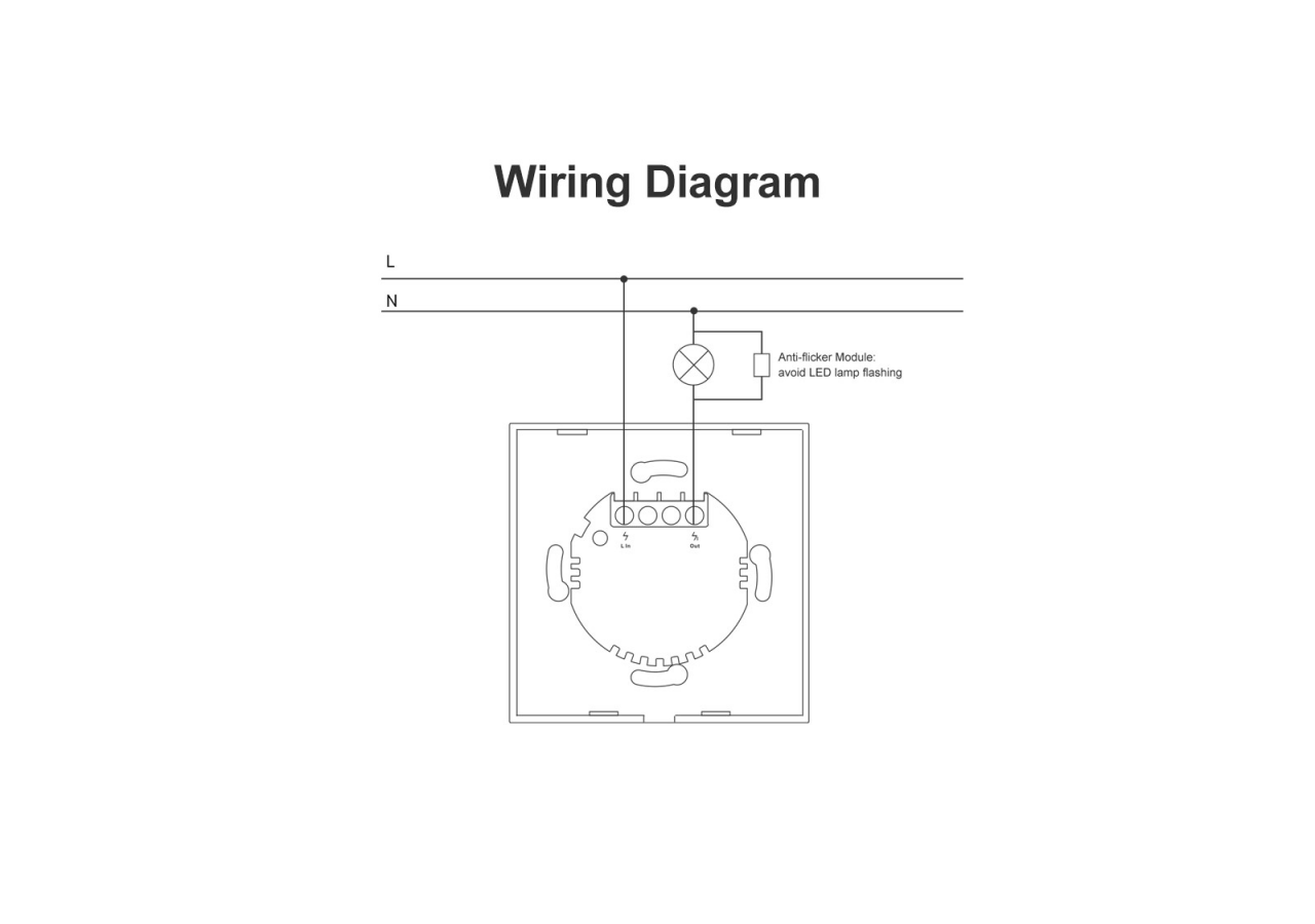 L'interrupteur SONOFF TOUCHadmet une charge de jusqu' à 400W / 2A. Il s'encastre facilement dans un boîtier standard EU/86, et requiert un câblage simple tel qu'illustré par le schéma ci-dessous. Notre service client et nos techniciens sont à votre entière disposition en cas de doute concernant l'installation, le câblage ou la configuration de l'appareil.