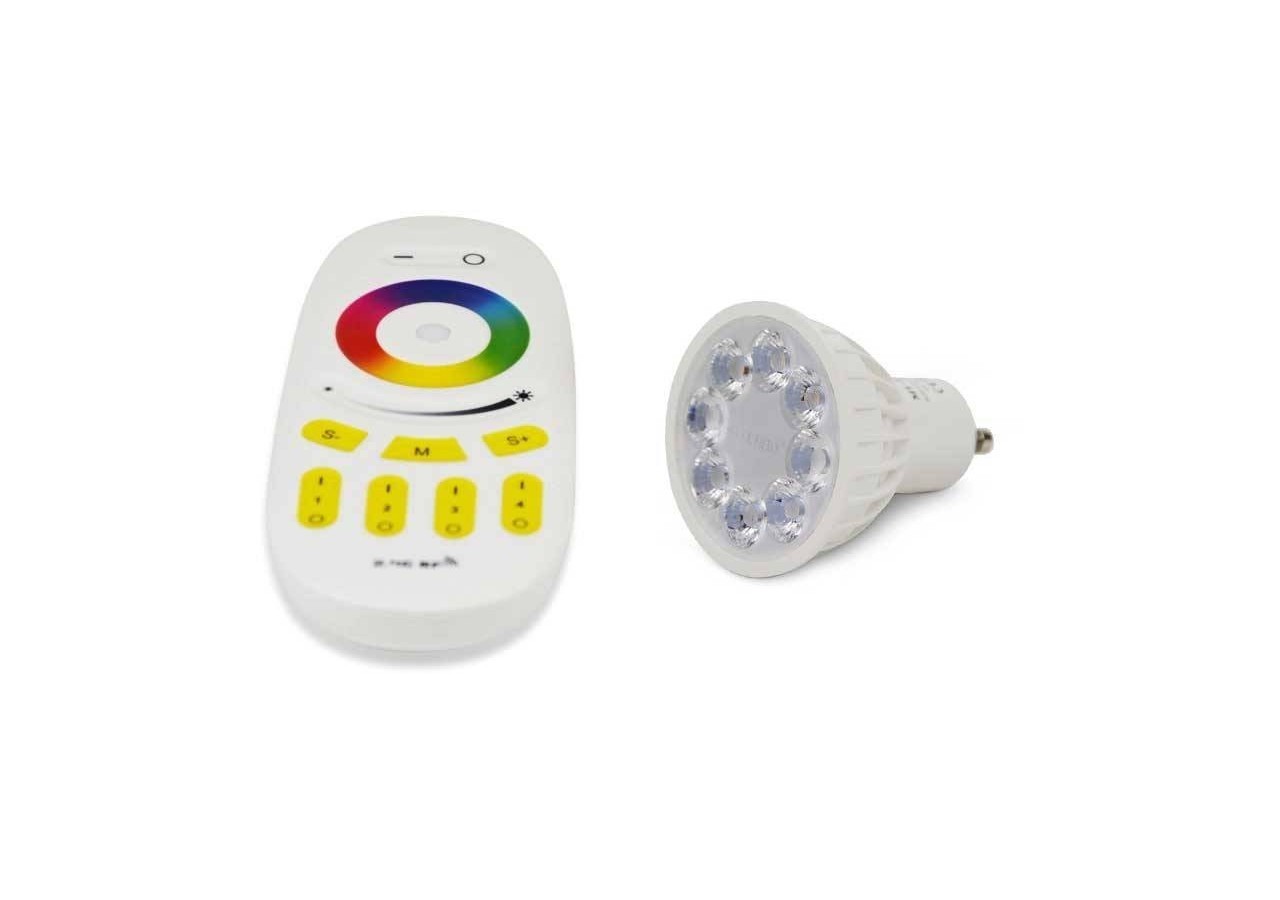 Apprenez à utiliser l'ampoule dichroïque LED GU10 RGB + CTT avec son contrôleur RF ou via Wi-Fi.