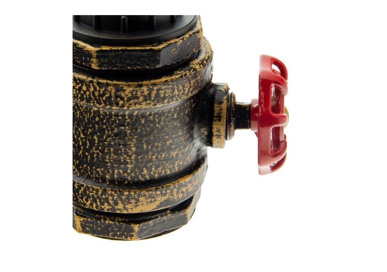 Lampe de table compacte imitant un élément de tuyauterie en cuivre vieilli, orné d'une molette rouge purement décorative (l'interrupteur se trouve sur le câble). Très originale, la lampe Luxxo est idéale pour apporter une touche design à votre intérieur.