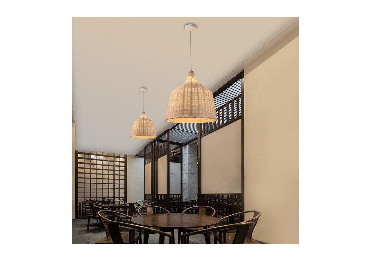 La lampe en osier suspendue contient un support de lampe pour l'ampoule LED E27, non inclus. Abat-jour fait main en rotin naturel, bois de haute qualité, esthétique, résistant aux températures élevées, sûr et durable. Conçu avec un style exotique, naturel et rustique. Il est idéal pour les zones de transit, les salons, les chambres, les restaurants, les magasins, les lieux rustiques, les bars et toutes sortes de lieux intérieurs.