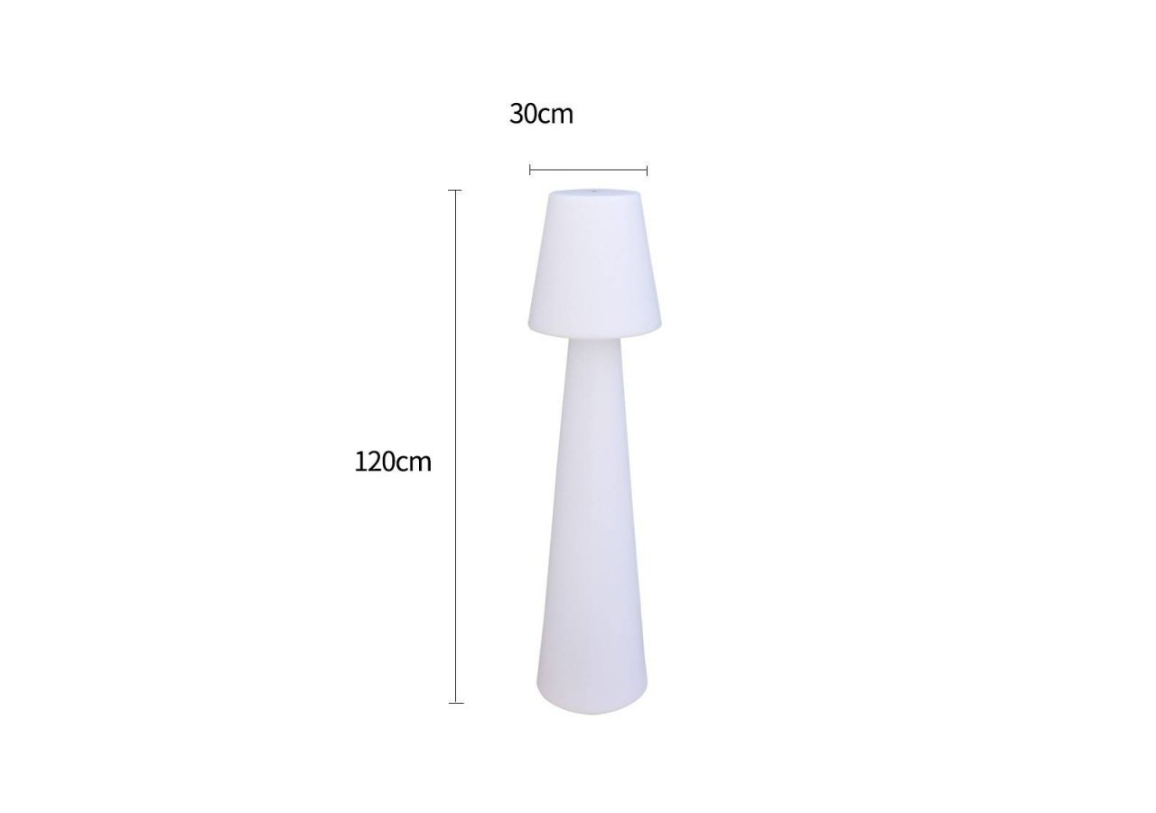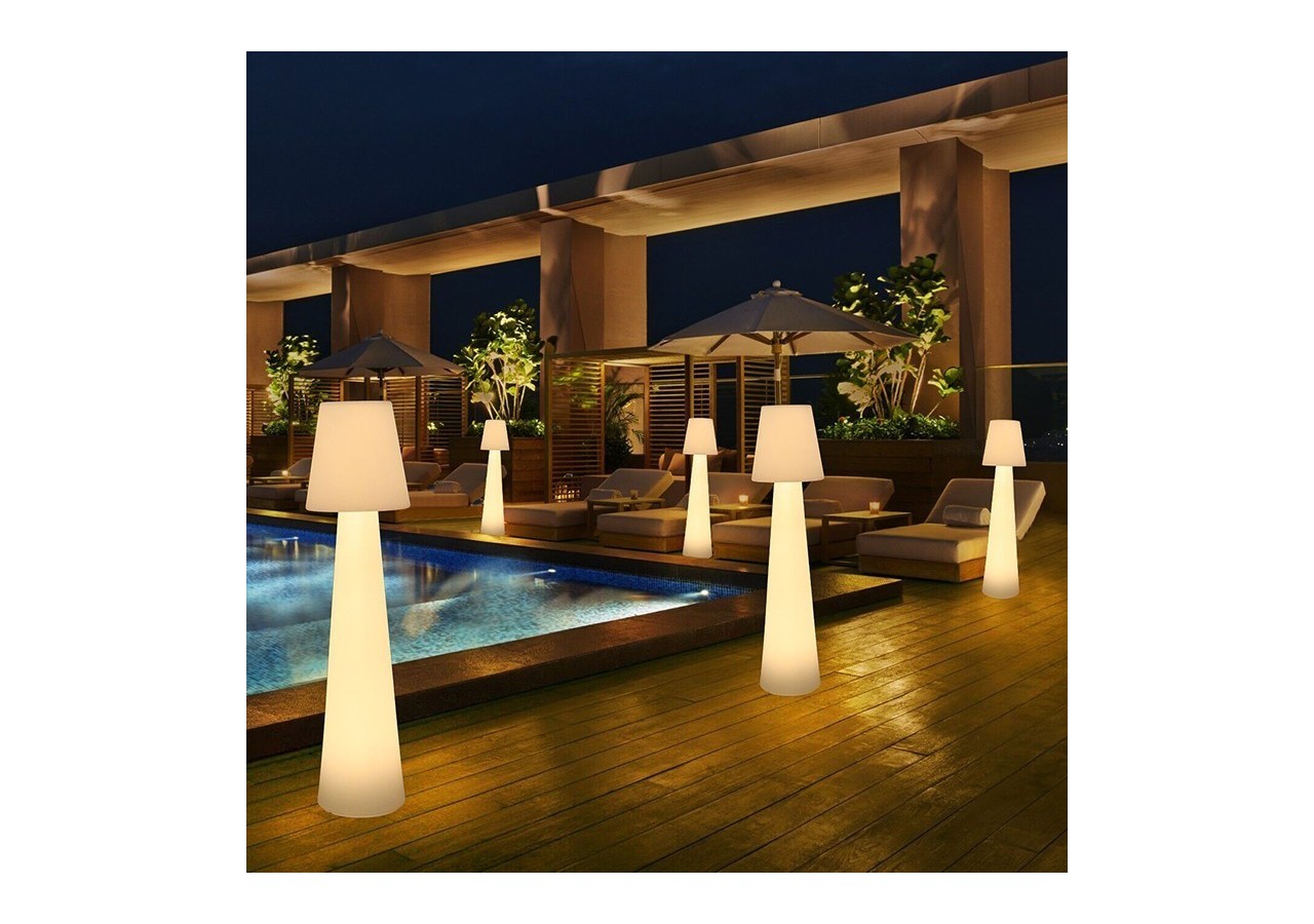 Lampe LED RGBW pour extérieur,idéale commeéclairage décoratifdans un jardin, au bord d'une piscine ou sur une terrasse. Il s'agit d'un luminaire rechargeable fonctionnant sur batterie, que vous pouvez donc déplacer facilement au gré de vos envies sans vous encombrer de câbles. Entièrement contrôlable par télécommande, ce lampadaire de jardin est l'un des produits phares de notre gamme demobilier LED. Son design ultramoderne en polypropylène blanc en fait un accessoire tendance idéal pour créer une ambiance sophistiquée.