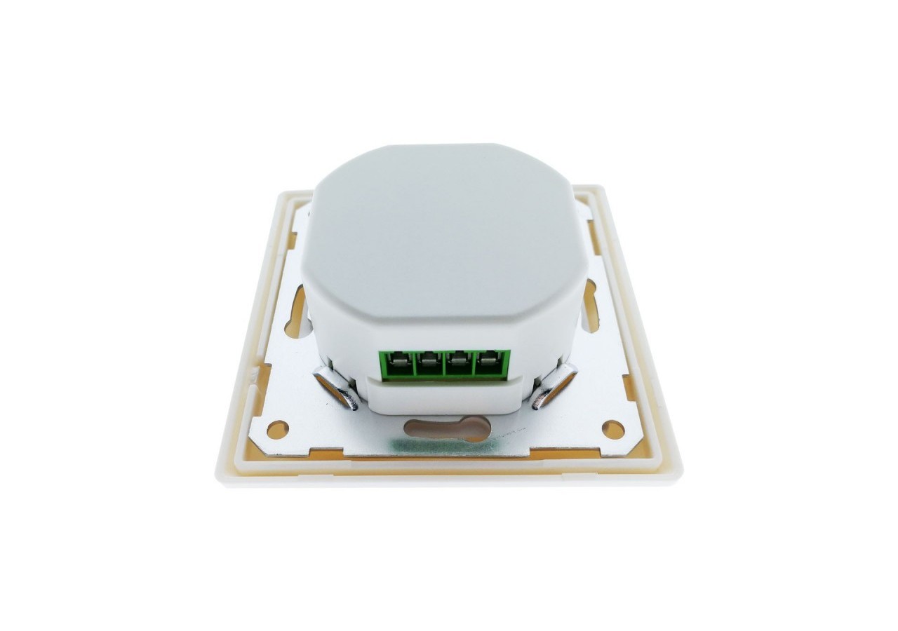 Interrupteur variateurdeux voies, prenant en charge une intensité de jusqu' à 1,2A par voie. Idéal tant comme solution de remplacement sur des installations existantes, que pour de nouvelles installations électriques à intensité variable. Connexion active avec deux câbles seulement (ne nécessite pas de neutre). Dispositif de protection intégré contre tout risque de surtension (>120W), court-circuit et surchauffe (>125ºC).