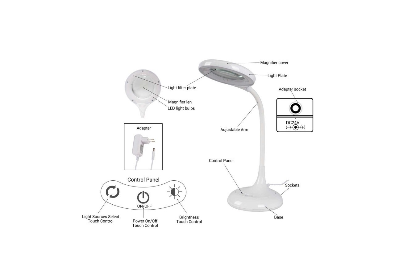 Cette lampe de tableest un outil de travail essentiel, combinant une loupe de haute qualité et un éclairage LED puissant et uniforme, tout en étant conçue en polycarbonate blanc.